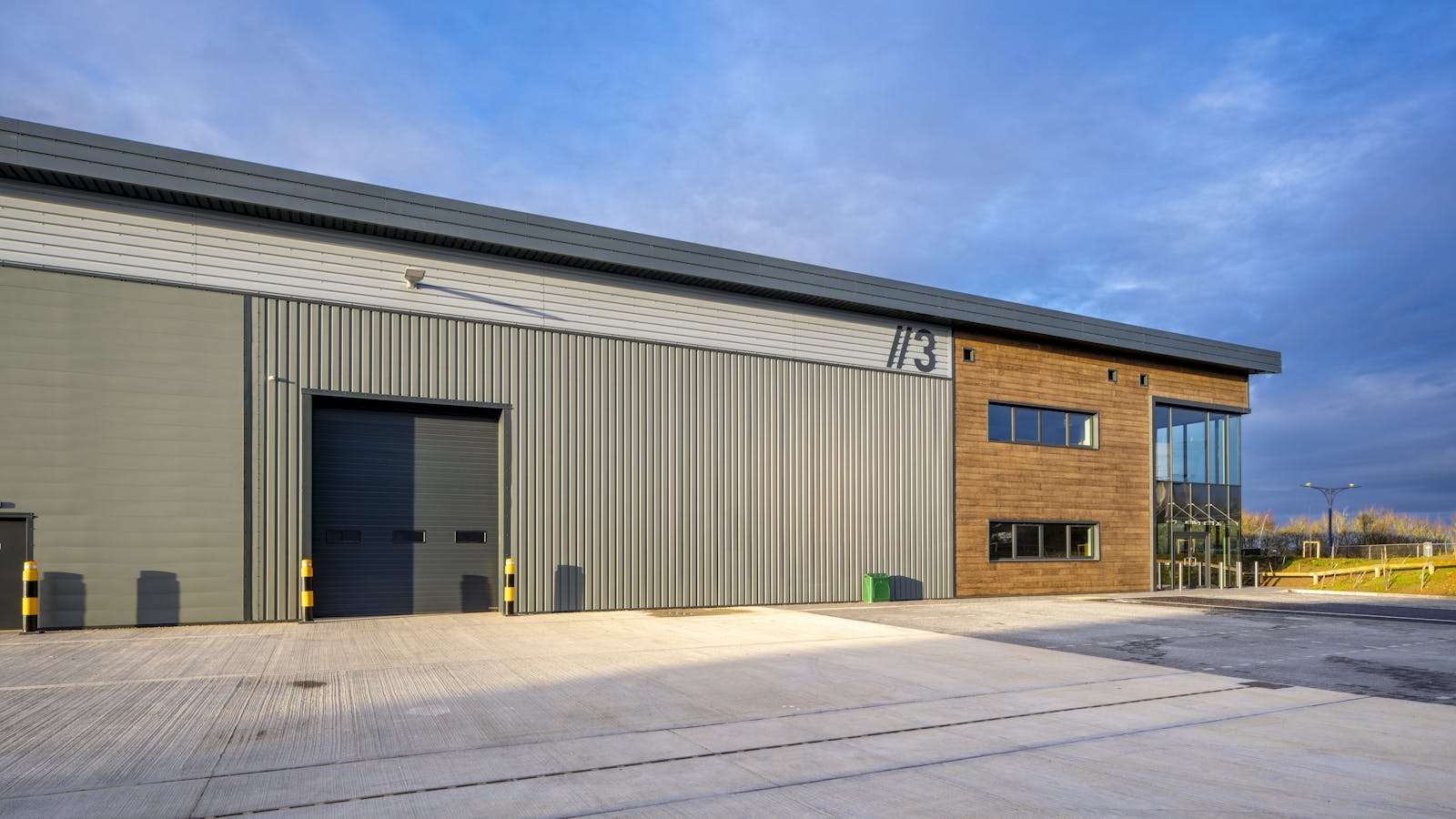 The secure gated site has units ranging in size from 11,000–70,500 sq ft, with yards up to 45m and dedicated office space to each.