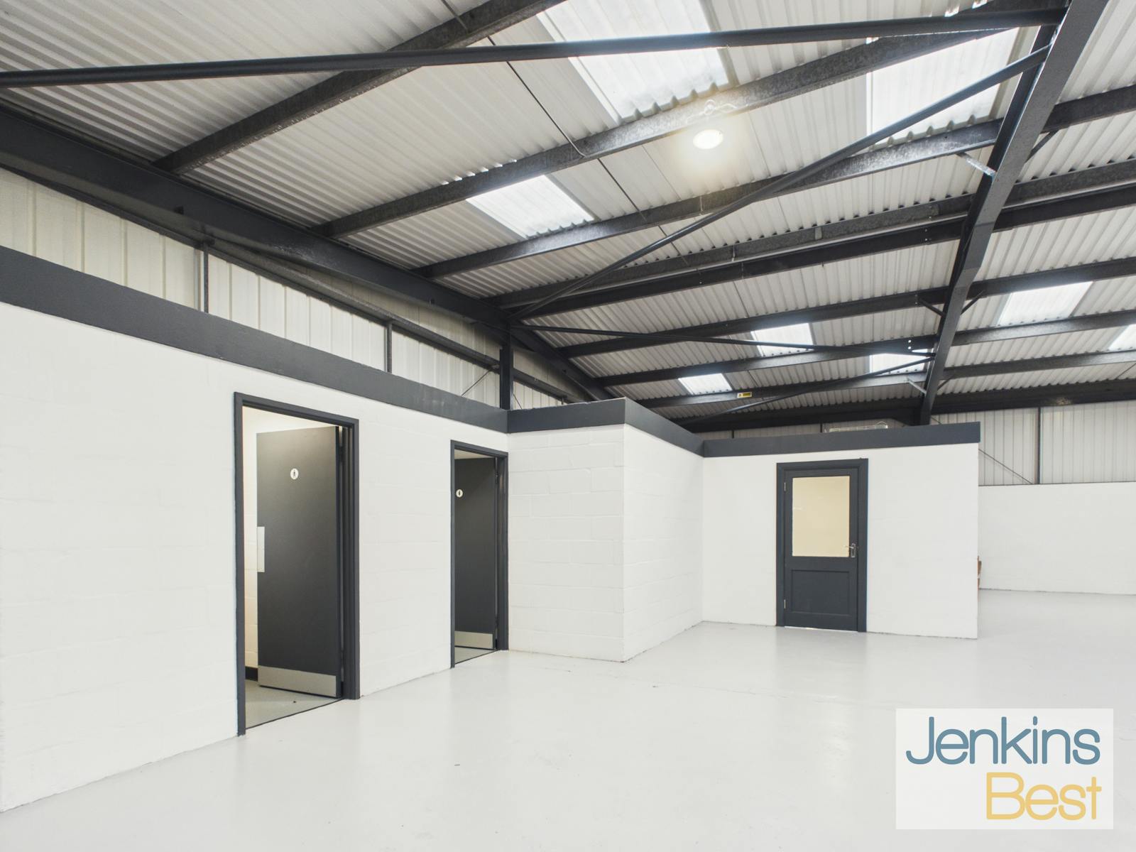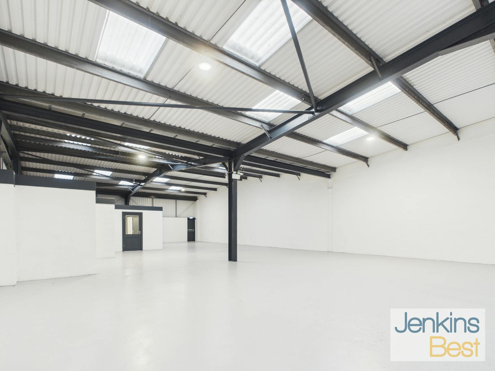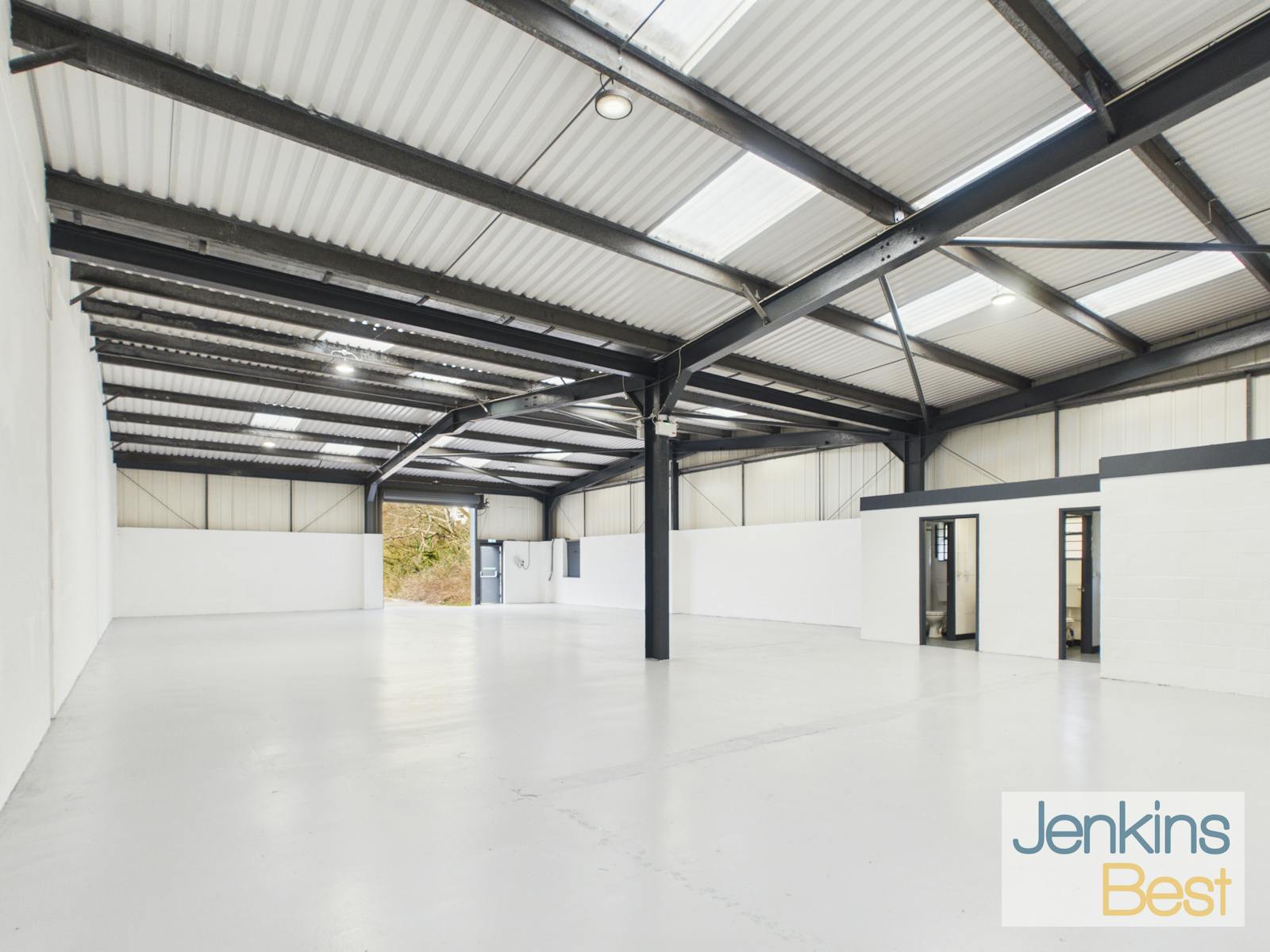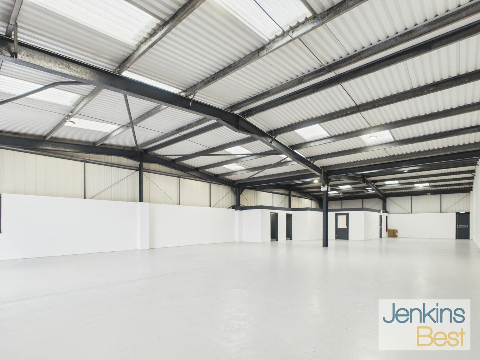 With open plan workshop / warehouse accommodation, roller shutter door, LED lighting and dedicated parking with additional communal parking.