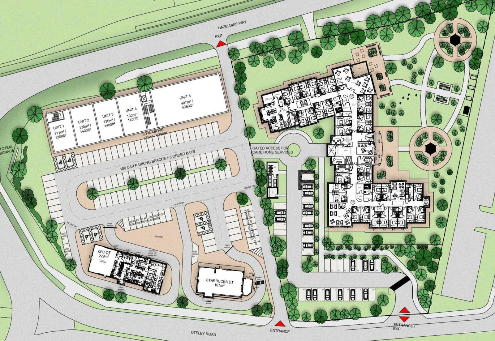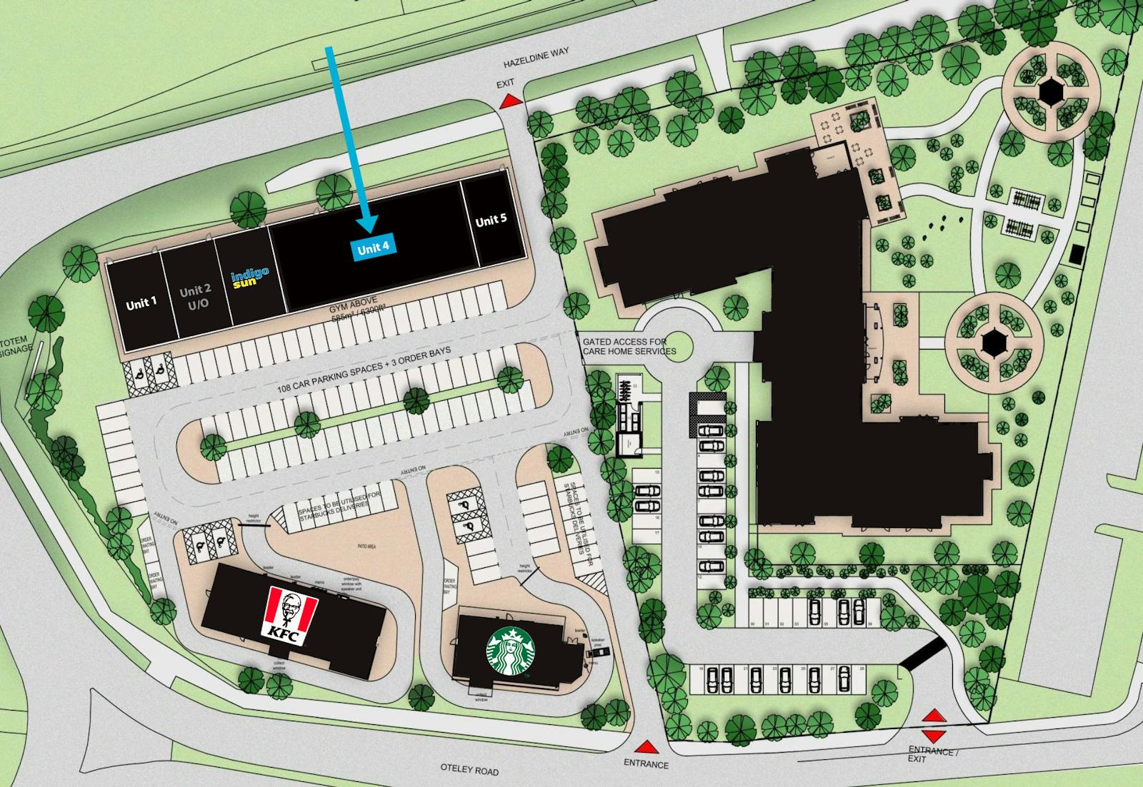 The development comprises of a modern parade anchored by KFC, Starbucks and Indigo Sun, together with four additional units, including Unit 1 which extends to an Internal Floor Area of approximately 1,1442 sq ft (134 sq m). Unit 1 will be accessed directly from Oteley Road and supported by over 100 shared on-site car parking spaces, further complemented by more than 2,000 spaces within a five-minute walk.