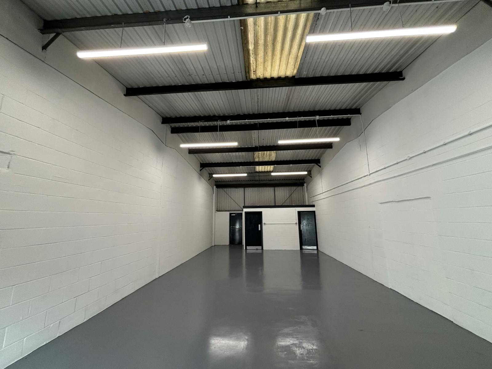 Unit 43 is a mid terrace unit of steel portal frame construction with part brick/blockwork, part metal clad elevations under a pitched roof. The unit comprises the following: