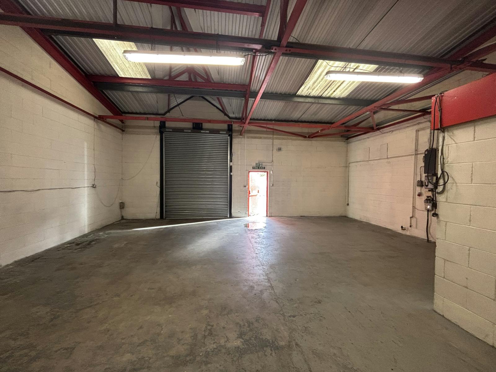 Unit 44 is a prominent light industrial / warehouse / trade counter unit visible from the main estate road. The units on the estate are of steel frame / truss construction with elevations predominately of brick/blockwork and profile steel sheeting. The pitched roofs are clad in profiled sheeting incorporating translucent panels. Access to the units are via steel roller shutter loading doors and separate pedestrian door.