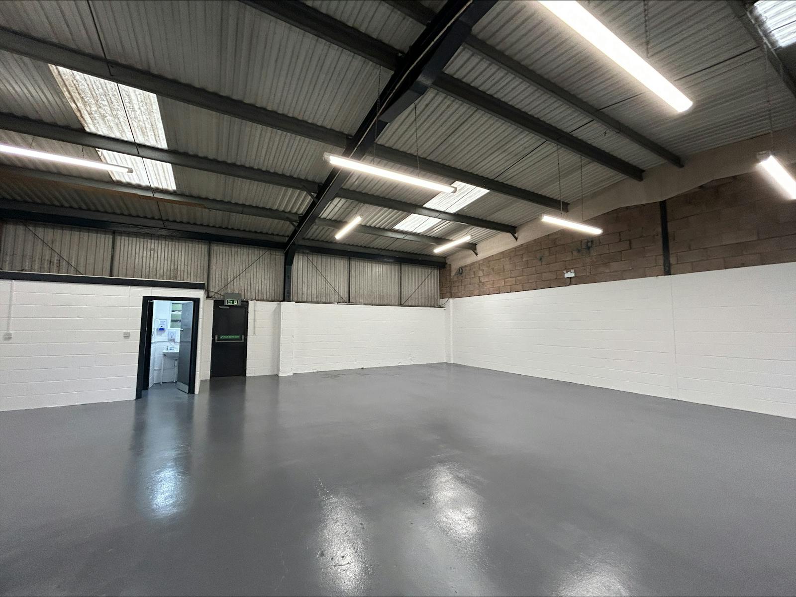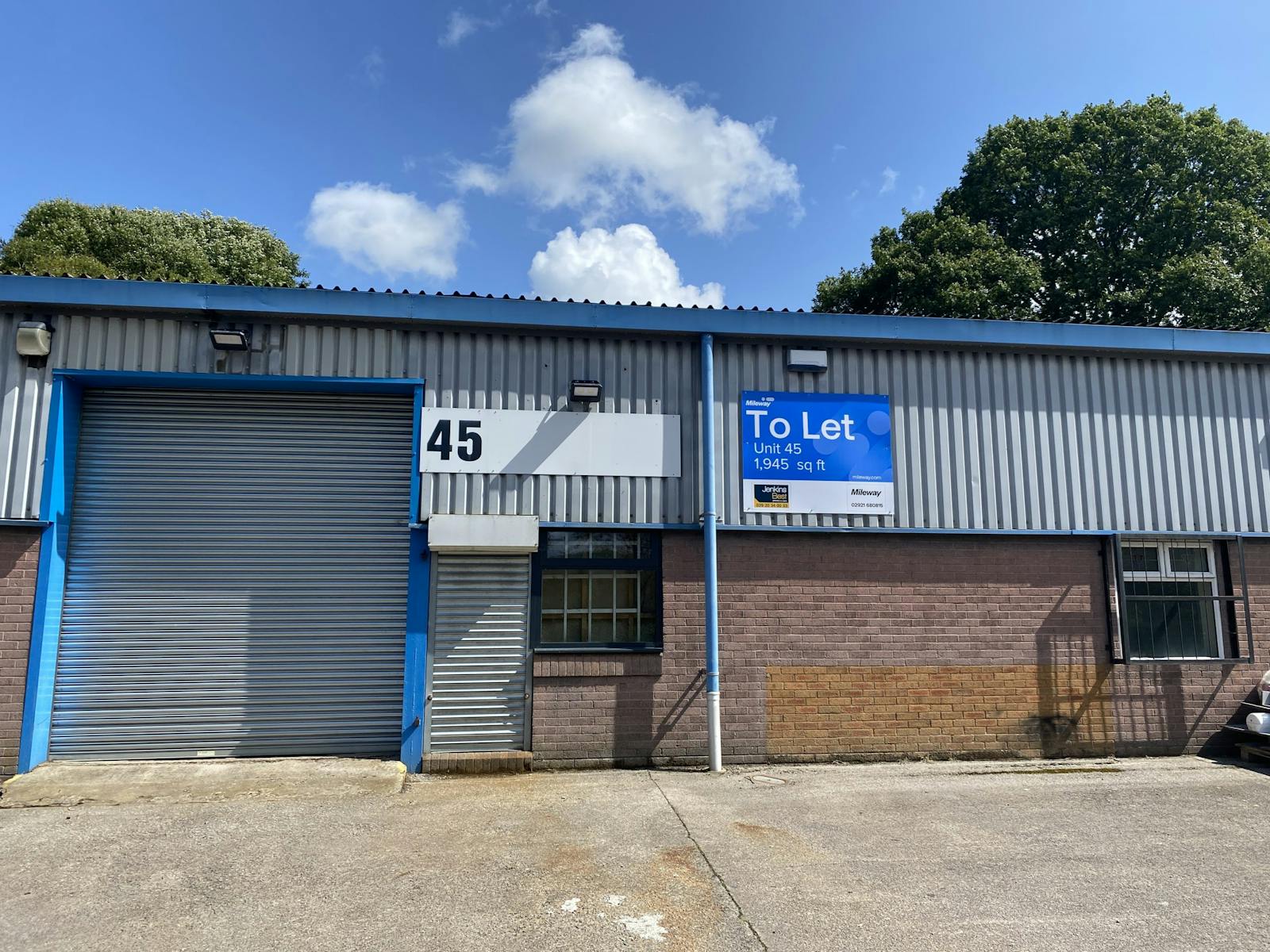 Unit 45 is a mid-terraced trade counter /light industrial / warehouse unit of steel frame construction.