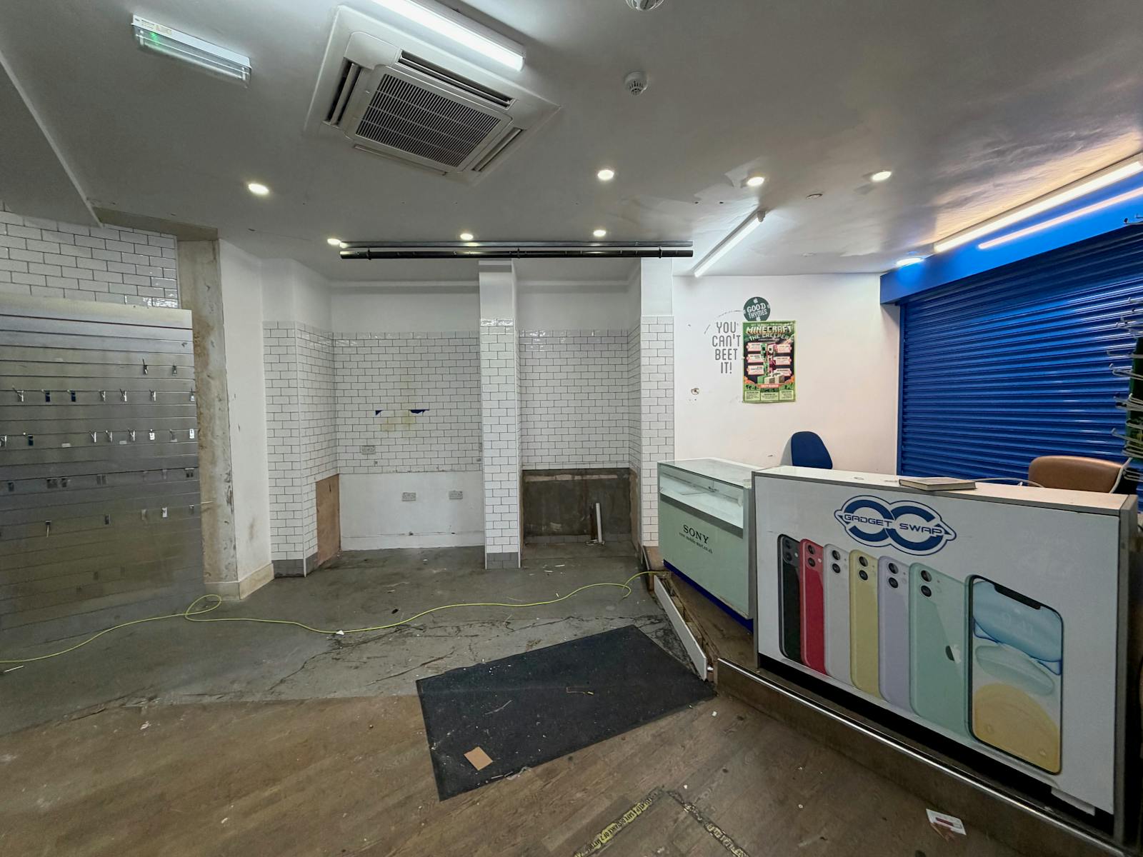 The property is situated in close proximity to a mix of well-established national and independent retailers. Internally, the unit benefits from an interior roller shutter, with a combination of wooden and concrete flooring and tiled wall finishes, suitable for a variety of uses (subject to the necessary consents).