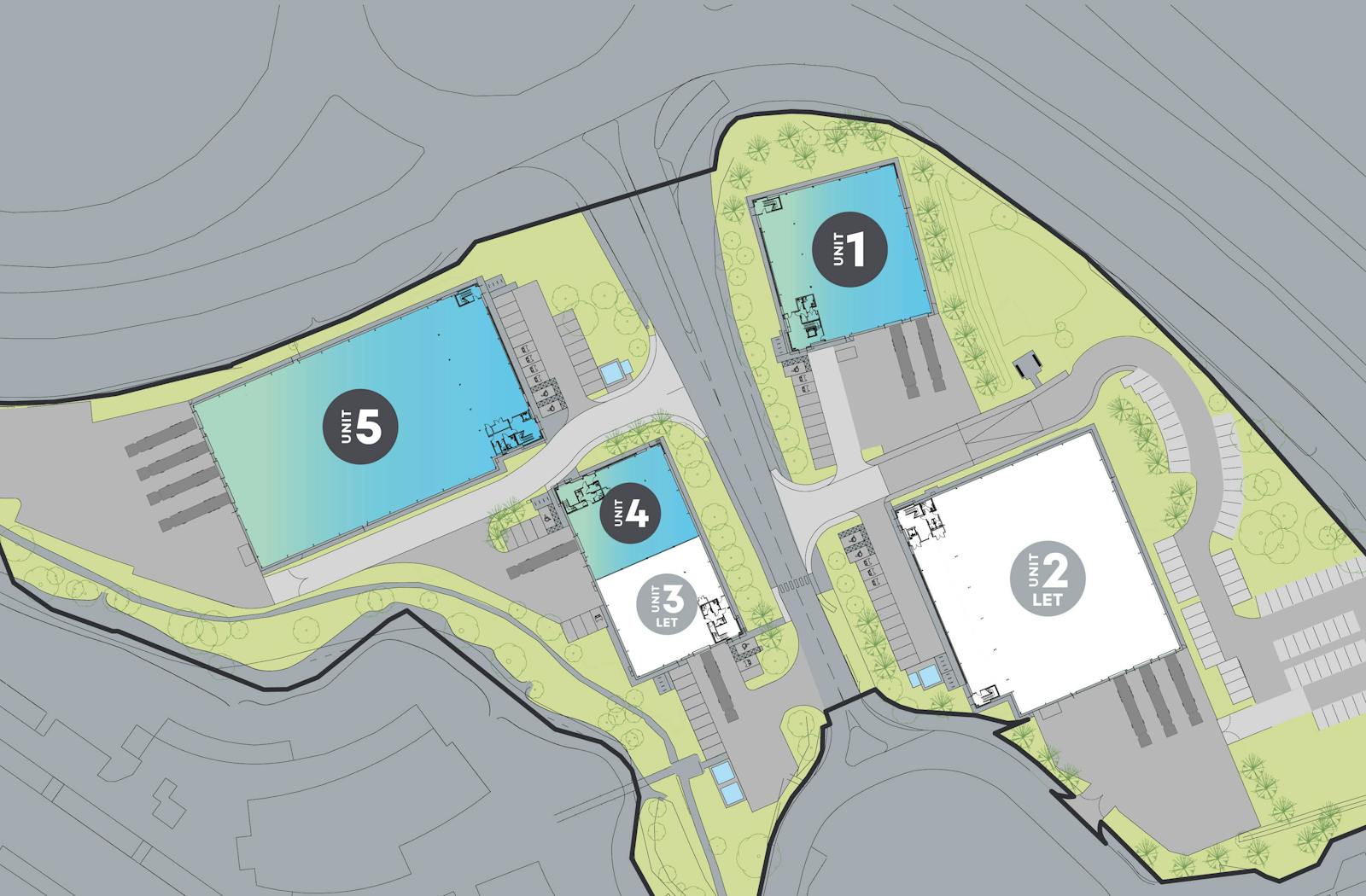 Unit 5 is an exciting new carbon neutral industrial / logistics warehouse with exceptional frontage to J4 M3. The development consists of landscaped grounds and river walks providing green spaces for staff wellbeing. Construction was completed in October 2024.