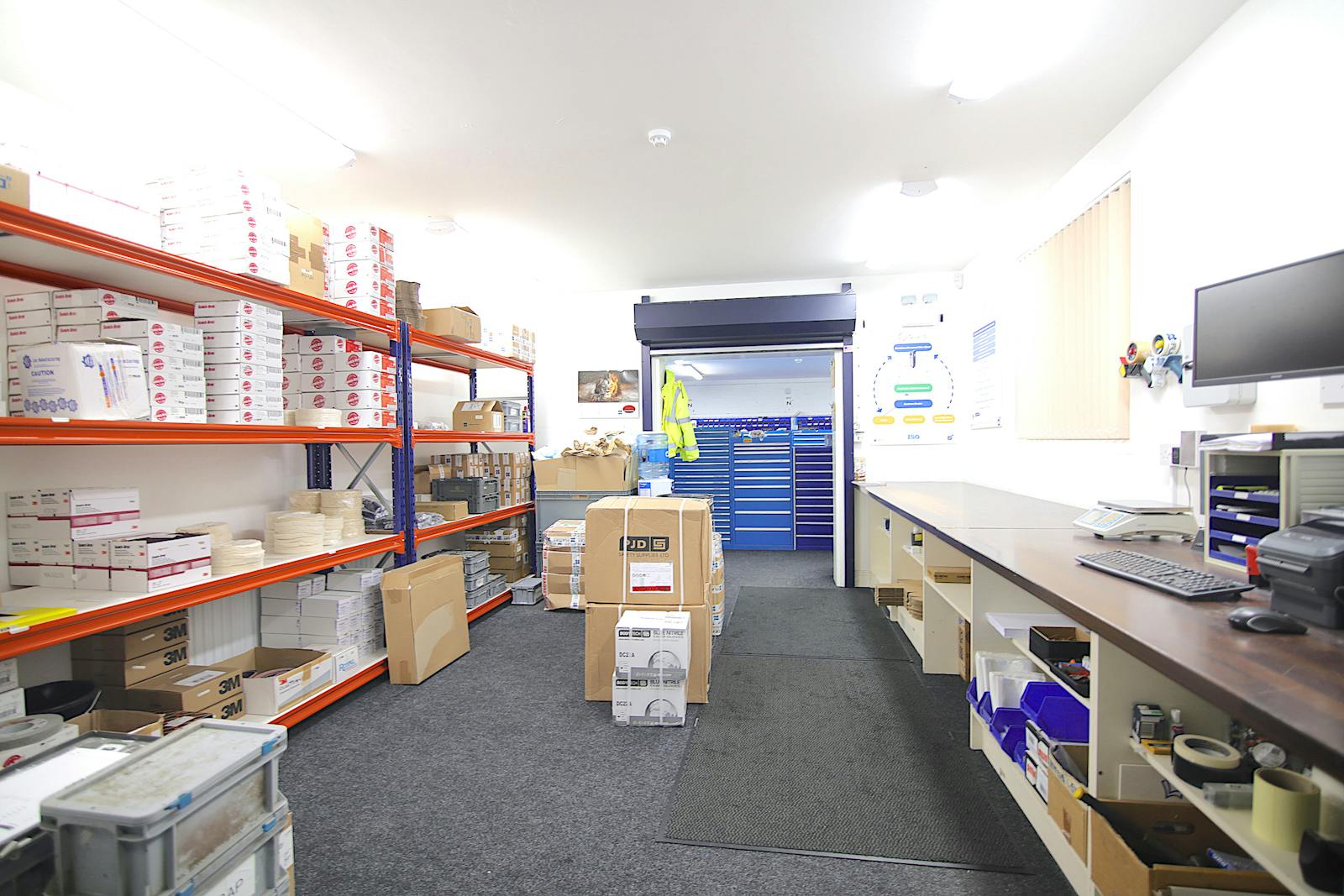 The warehouse is accessed via a full-height roller shutter door and extends to c. 379 sq. m. / 4,081 sq. ft.