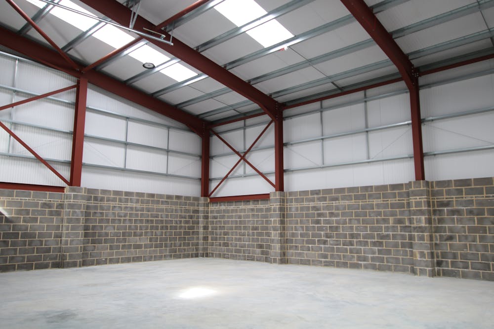 The unit has a mono pitch roof with insulated composite roof sheeting incorporating daylight panels. The property has a full height manual loading door and a single disabled compliant WC.