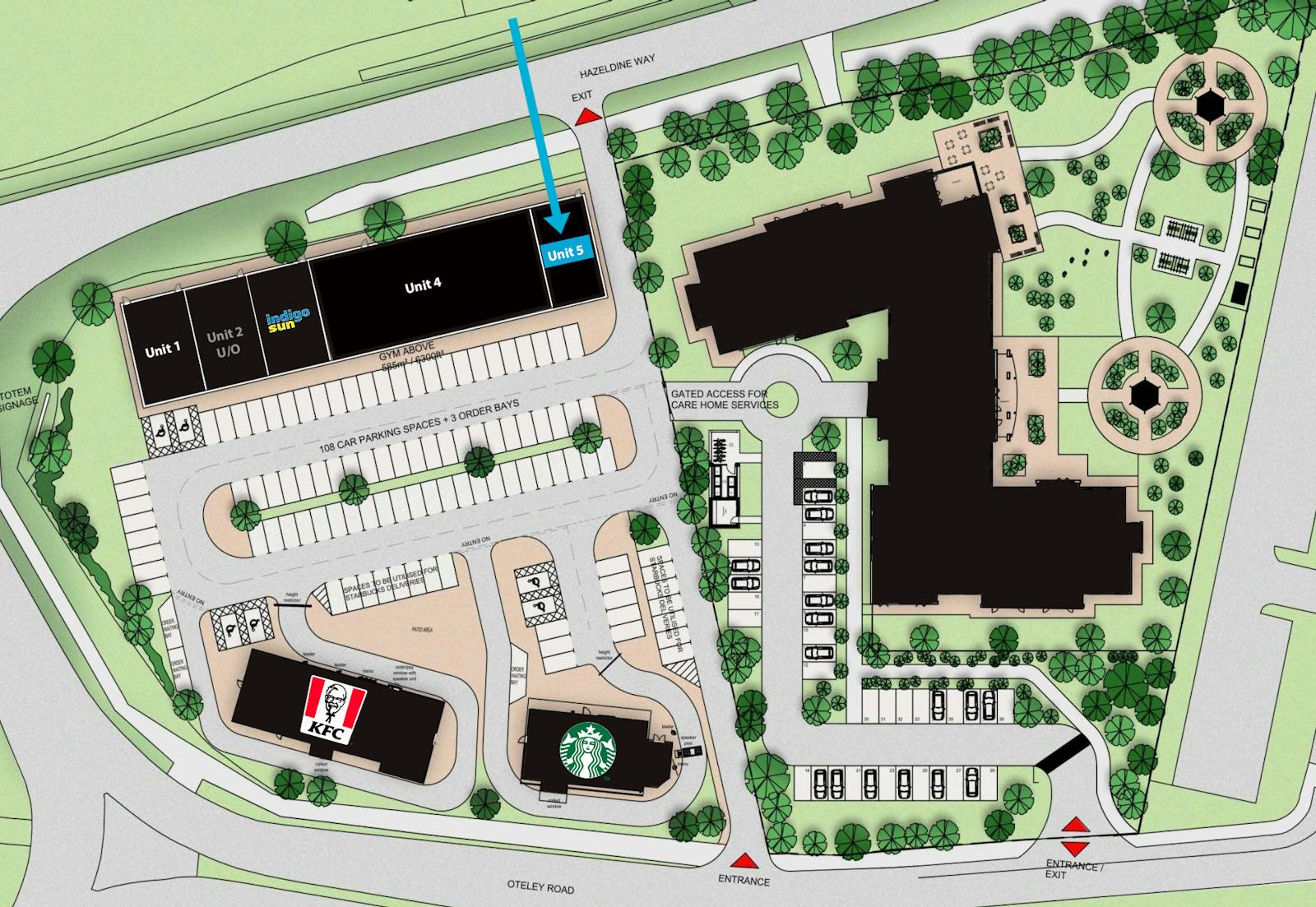 The development comprises of a modern parade anchored by KFC, Starbucks and Indigo Sun, together with four additional units, including Unit 1 which extends to an Internal Floor Area of approximately 1,1442 sq ft (134 sq m). Unit 1 will be accessed directly from Oteley Road and supported by over 100 shared on-site car parking spaces, further complemented by more than 2,000 spaces within a five-minute walk.