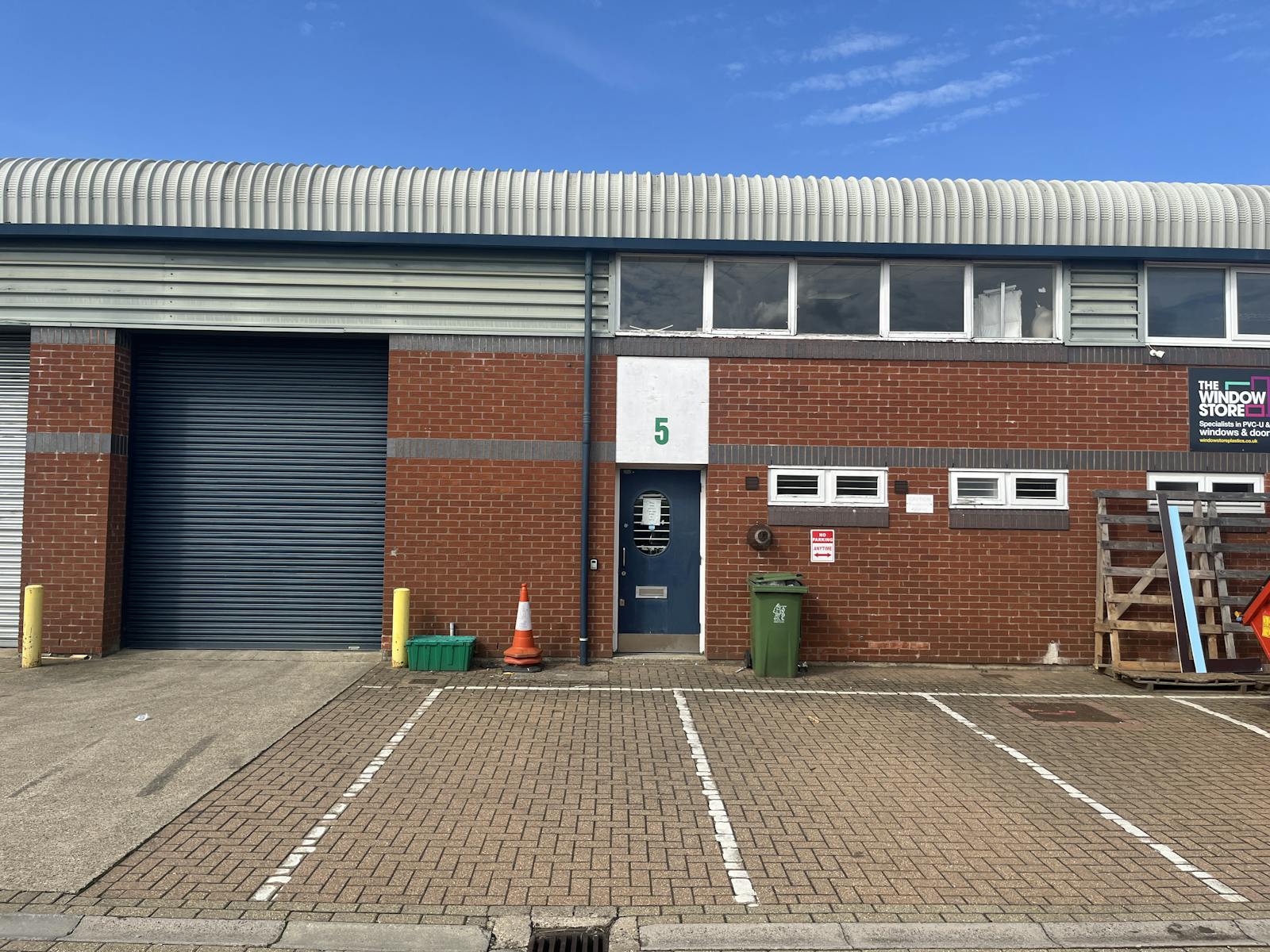 Unit 5 Vale Industrial Centre. The property comprises a modern single storey terraced buildings of steel frame construction under a pitched roof. They offer ground floor storage/production/distribution space, accompanied by male and female toilets and parking. Total 2,410 sq ft. Warehouse 1,810 sq ft. First floor offices of 600 sq ft.