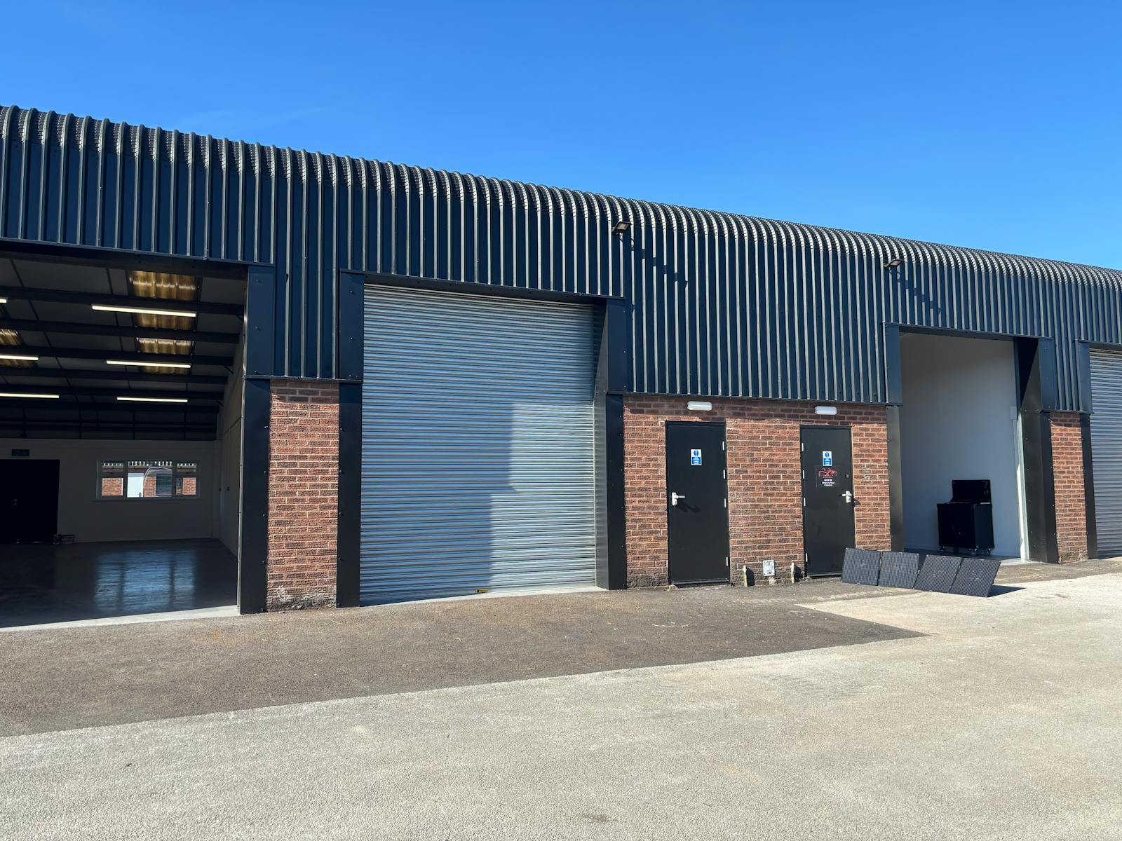 The building is of steel portal framed construction with brick elevations beneath a metal clad insulated roof. There is parking to the front elevation shared yard at the rear for loading/unloading. The remaining unit is 1,000 sq.ft and provides