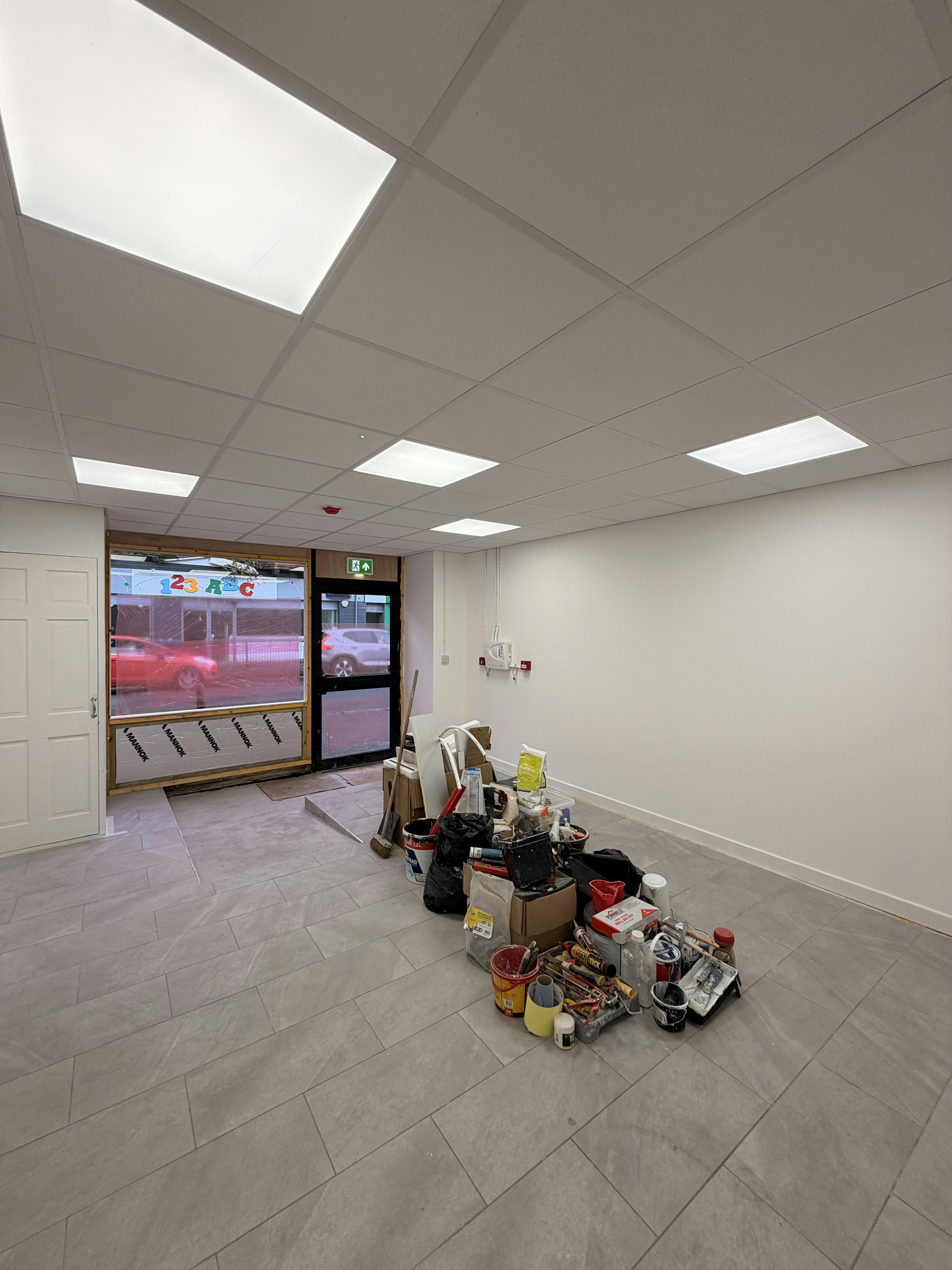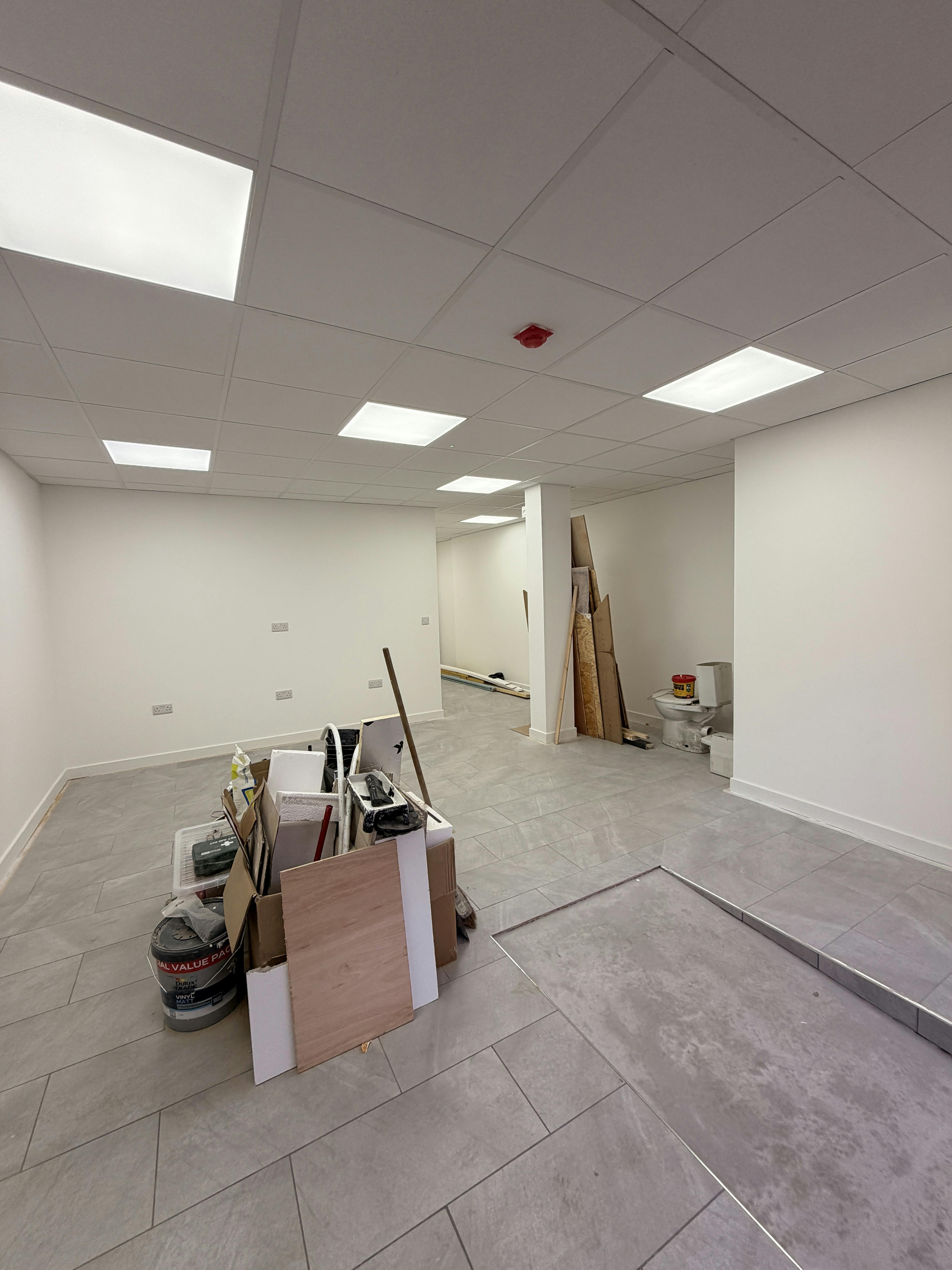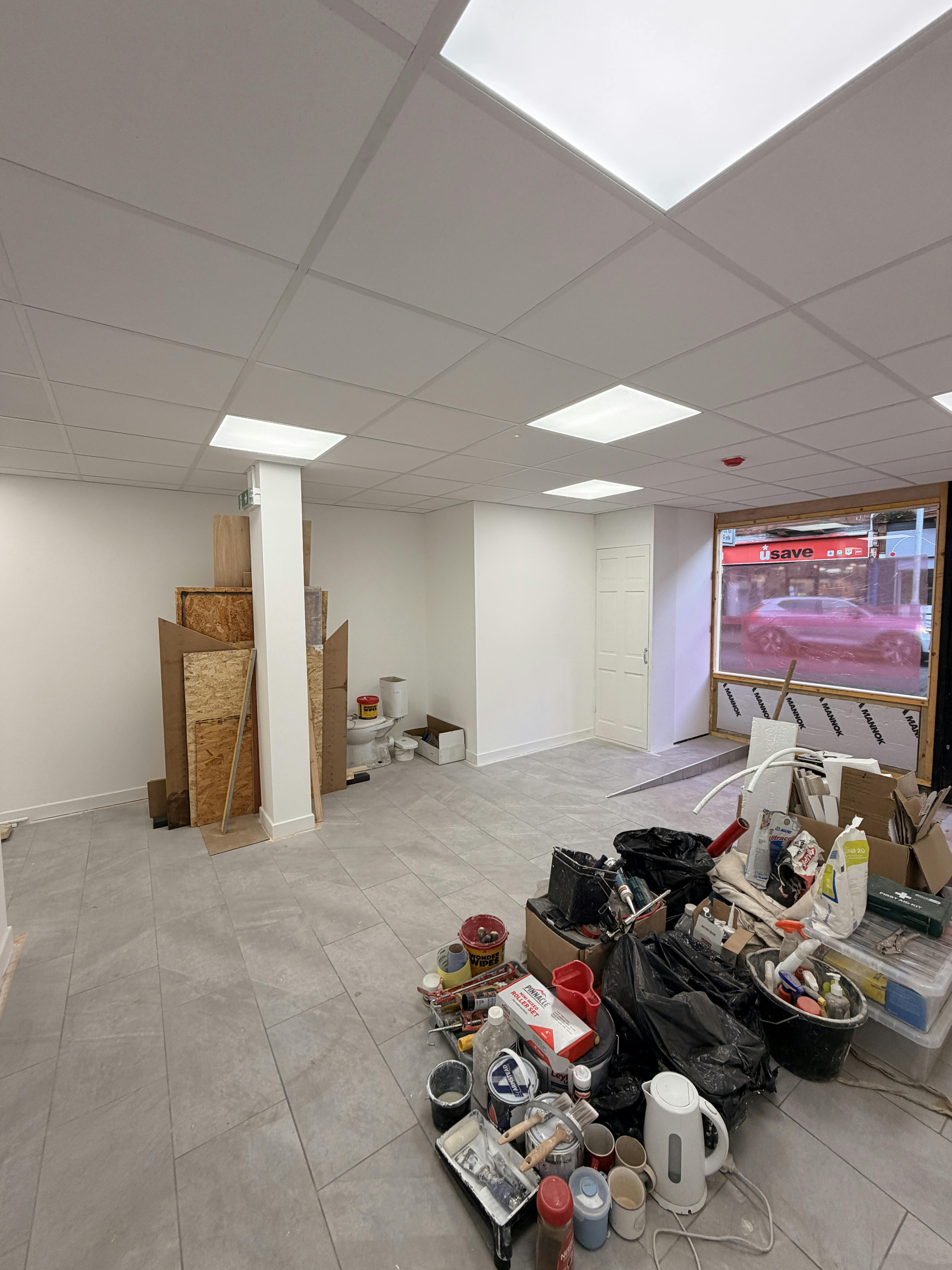 The property is undergoing refurbishment and will provide retail space to the front which inter-connects to storage space and staff welfare facilities to the rear. The floor throughout the space is covered in tiles. The walls will be of plaster/paint and the suspended grid ceiling will incorporate LED box lighting. Space heating will be provided electrically.