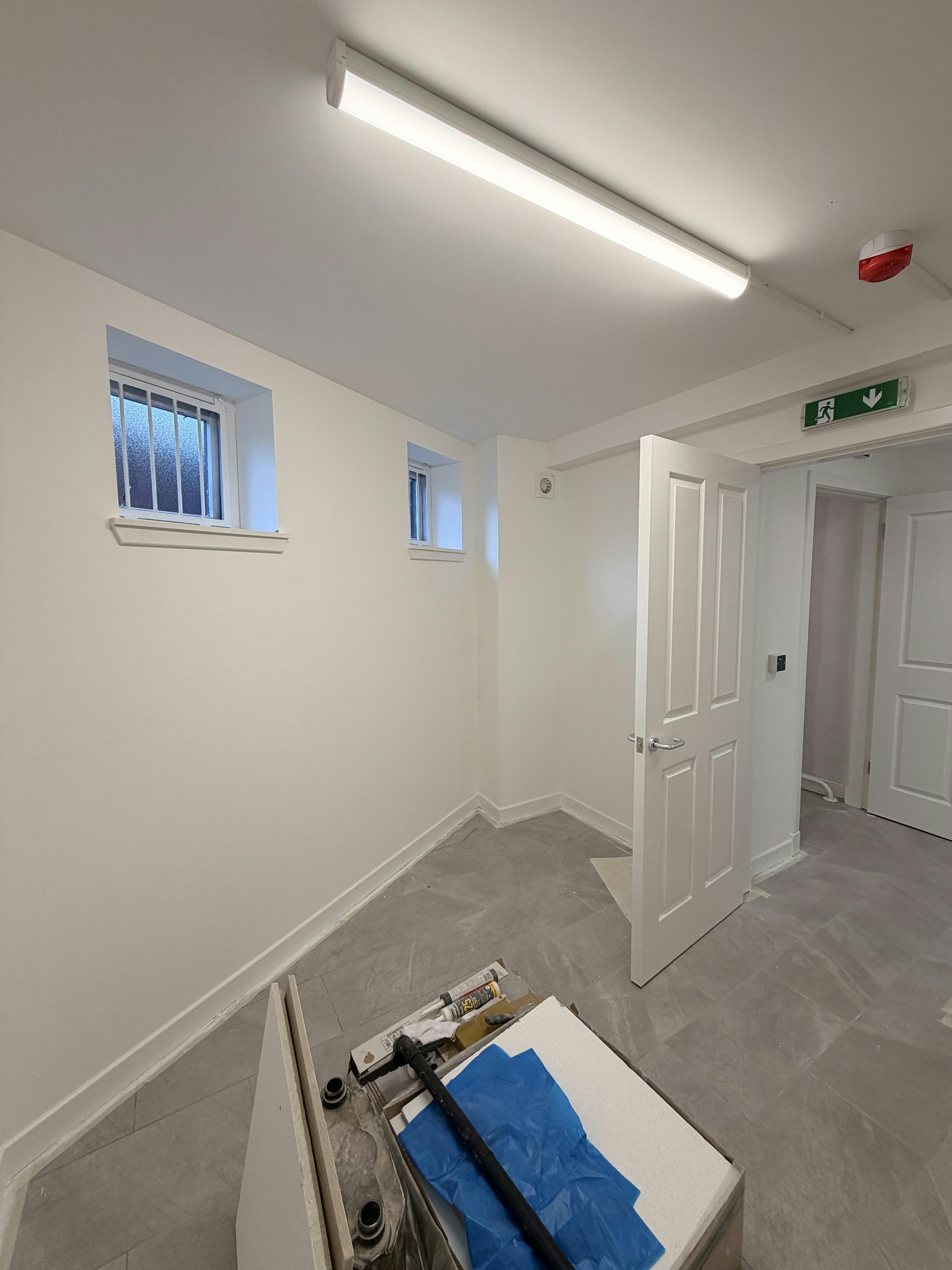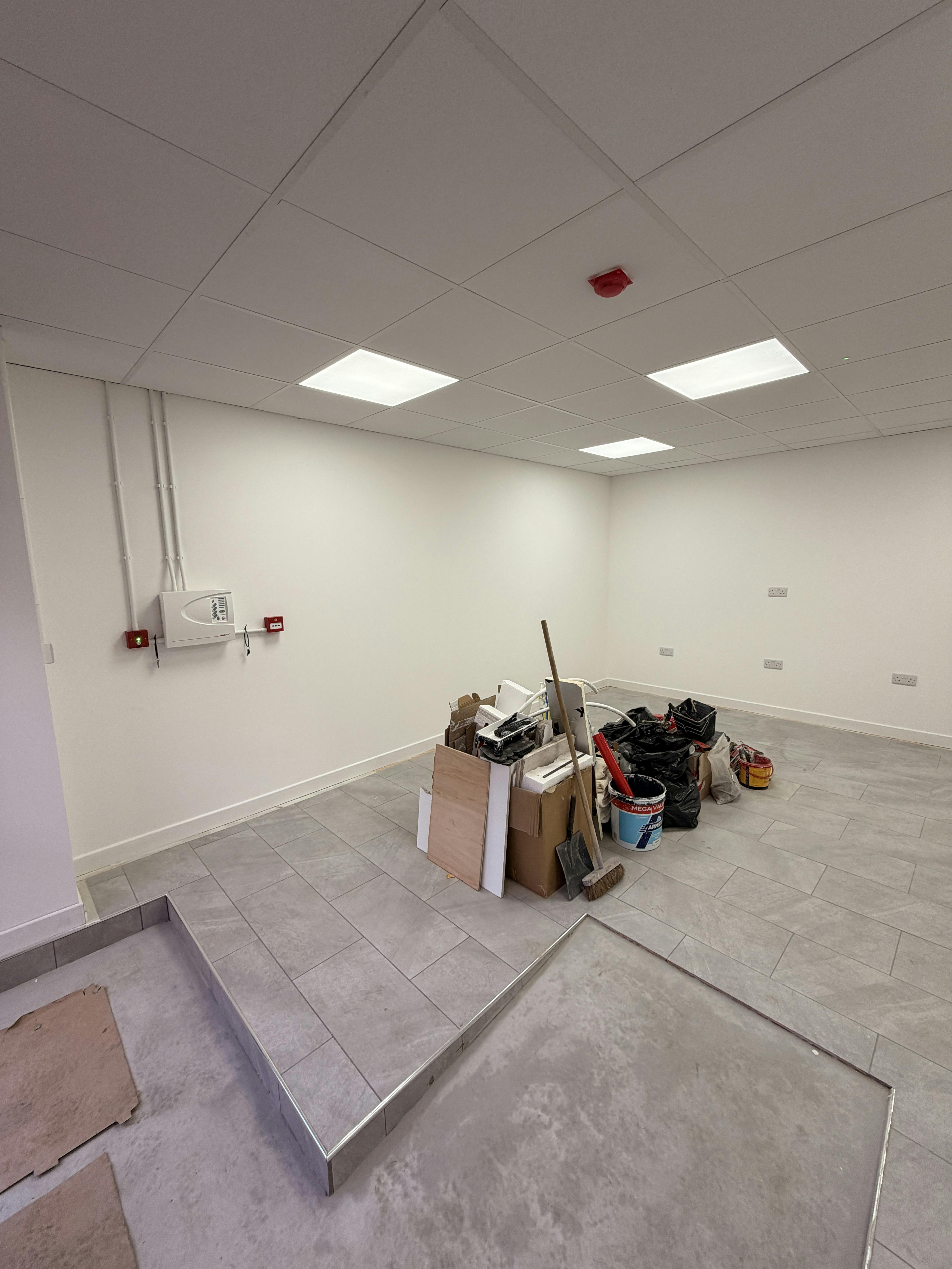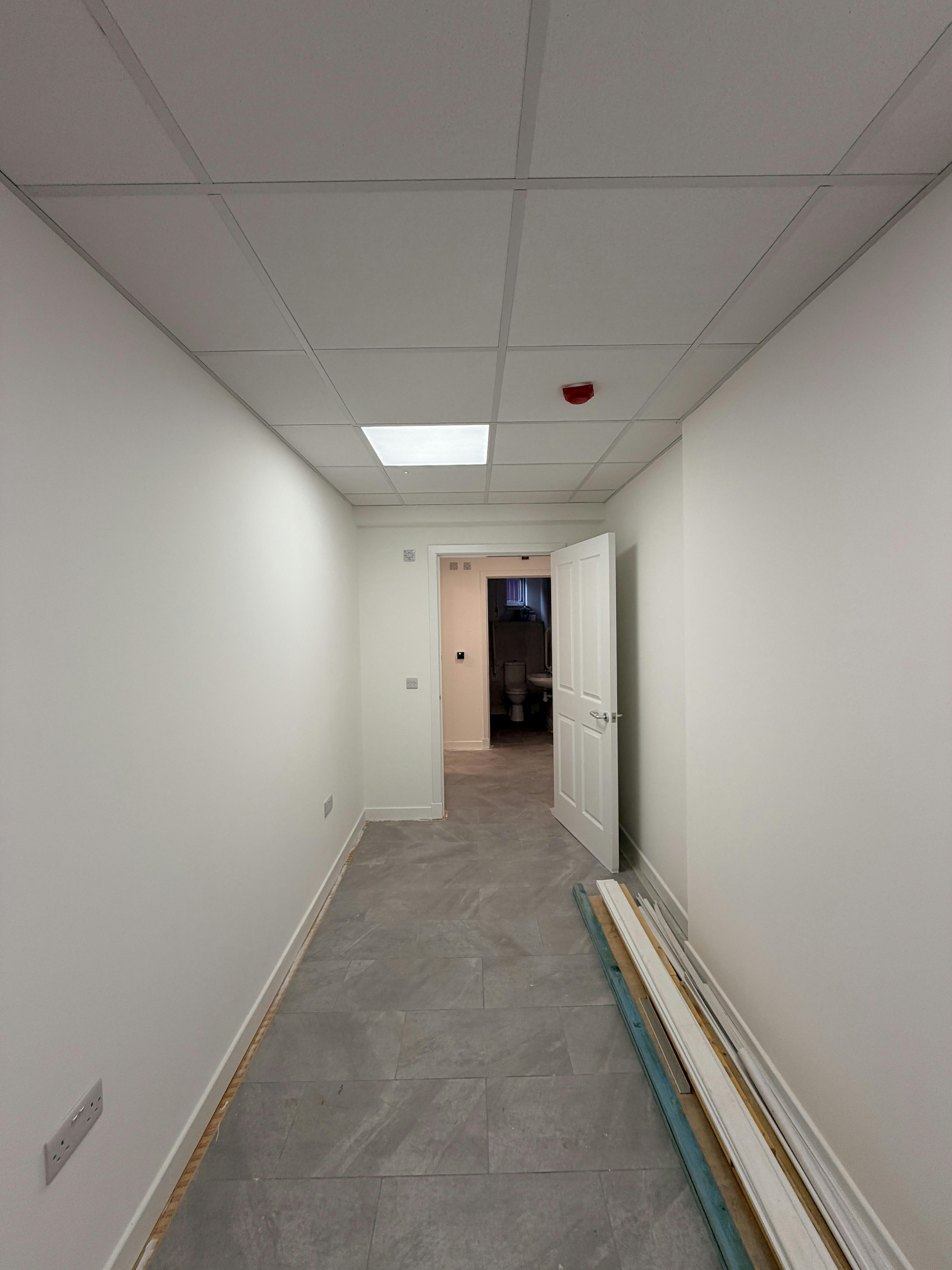 The property is undergoing refurbishment and will provide retail space to the front which inter-connects to storage space and staff welfare facilities to the rear. The floor throughout the space is covered in tiles. The walls will be of plaster/paint and the suspended grid ceiling will incorporate LED box lighting. Space heating will be provided electrically.