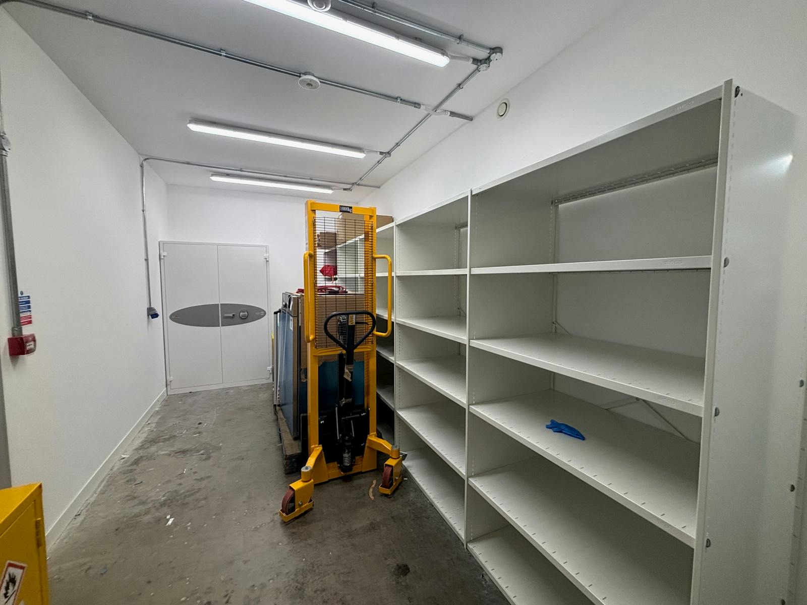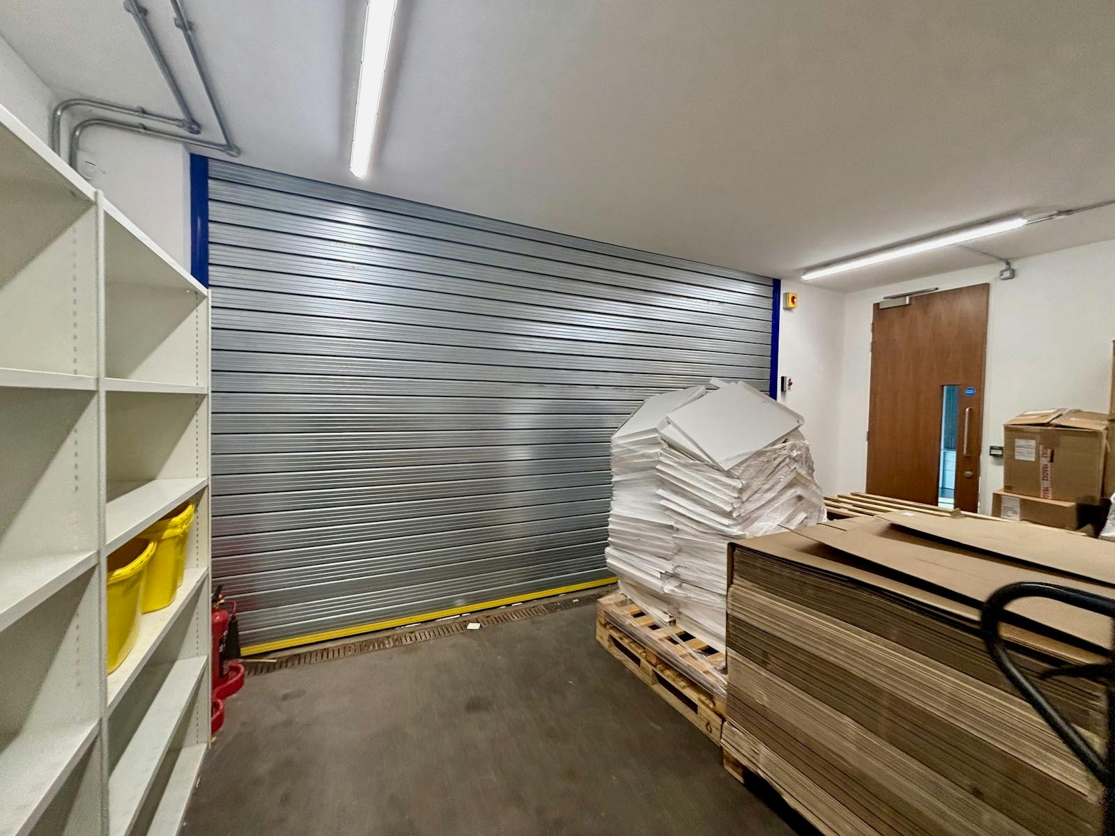 The building also includes a dedicated storage section with access via a roller shutter door measuring 4.41m high by 4.36m wide. Externally, the property offers 15 parking spaces, including 4 EV charging bays, with additional on‑street parking available.