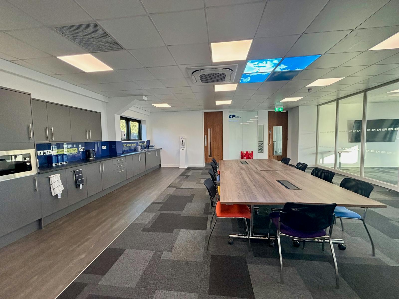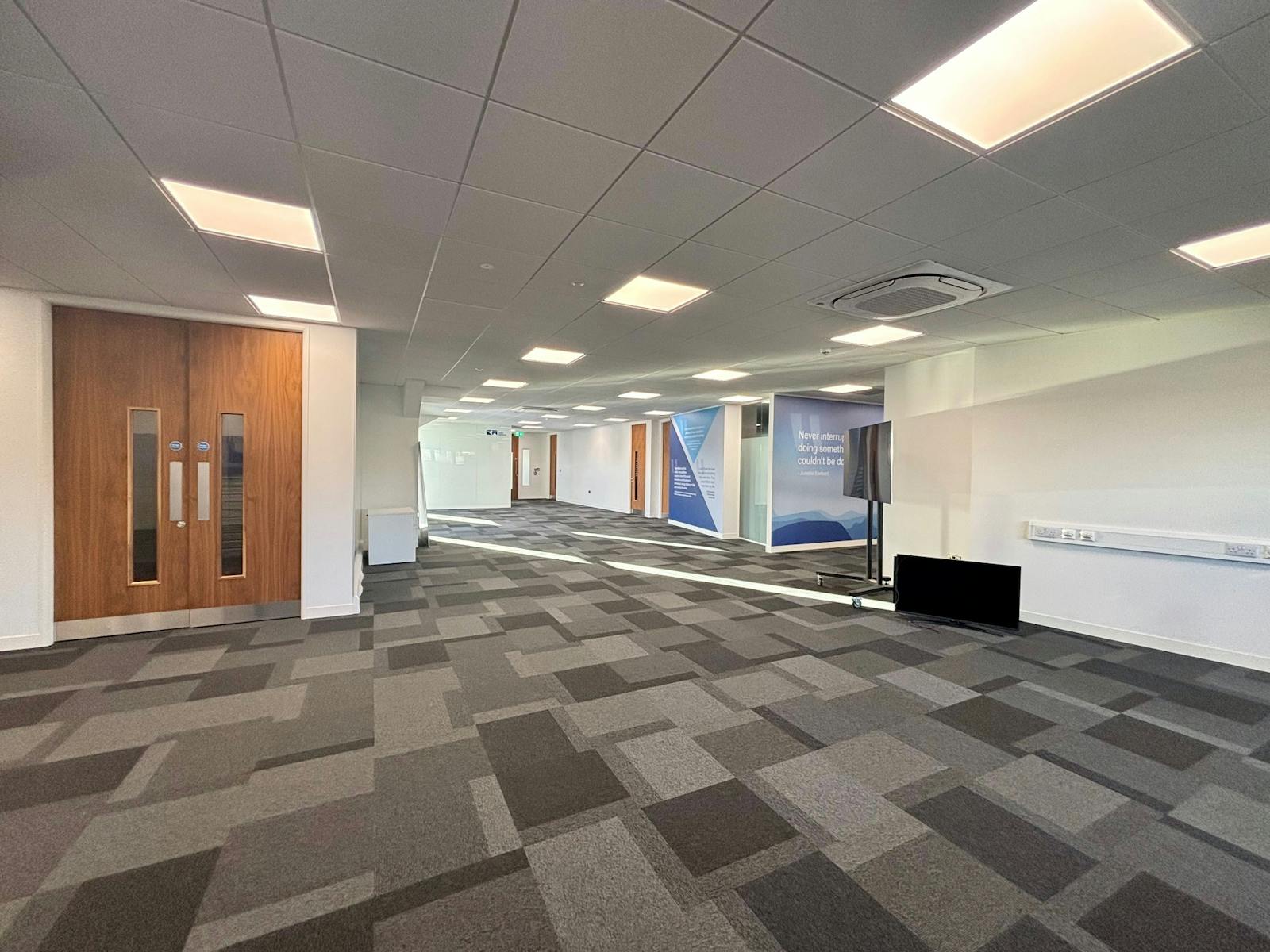 The property comprises a detached, modern building offering high‑quality office accommodation across two floors. The offices feature suspended ceilings with recessed LED lighting, comfort cooling, perimeter trunking, and excellent levels of natural light. Floor‑to‑ceiling height is approximately 2.7m.