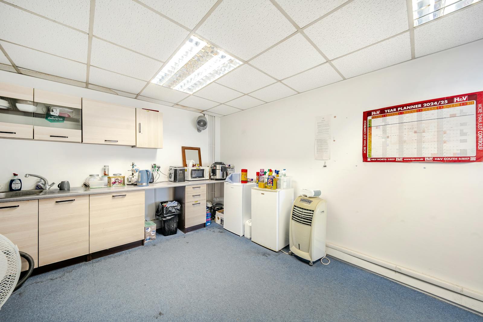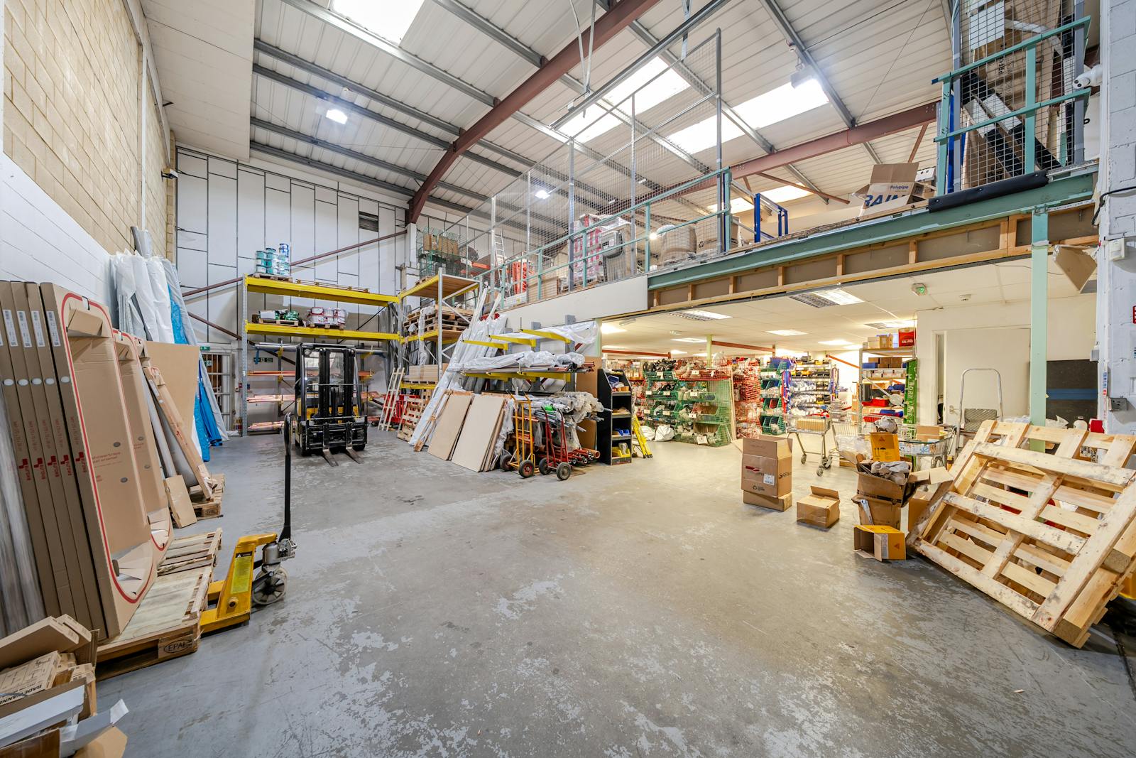 The ground floor is divided to form an entrance and reception area with two WC's/Washrooms and with an open plan Trade counter area of 706 sq. ft. approx., and an open plan Warehouse/Industrial area of 2,825 sq. ft. approx., with an eaves height of 26ft approx. Contained within the Ground floor Warehouse/Industrial area is an open plan Mezzanine Floor of 1,774 sq. ft. approx. The first floor office is in open plan having an area of 654.50 sq. ft. approx., with a kitchen and having a suspended ceiling, perimeter trunking and strip lighting. The ground floor Warehouse/Industrial area has an electric part height roller shutter with a full height section.