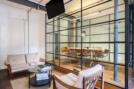 The ground floor provides an attractive reception, with open plan work space to the rear and a fully glazed meeting room. The engineered wooden floors, white painted exposed brickwork and exposed steels deliver a warehouse office ideal for the more creative businesses.