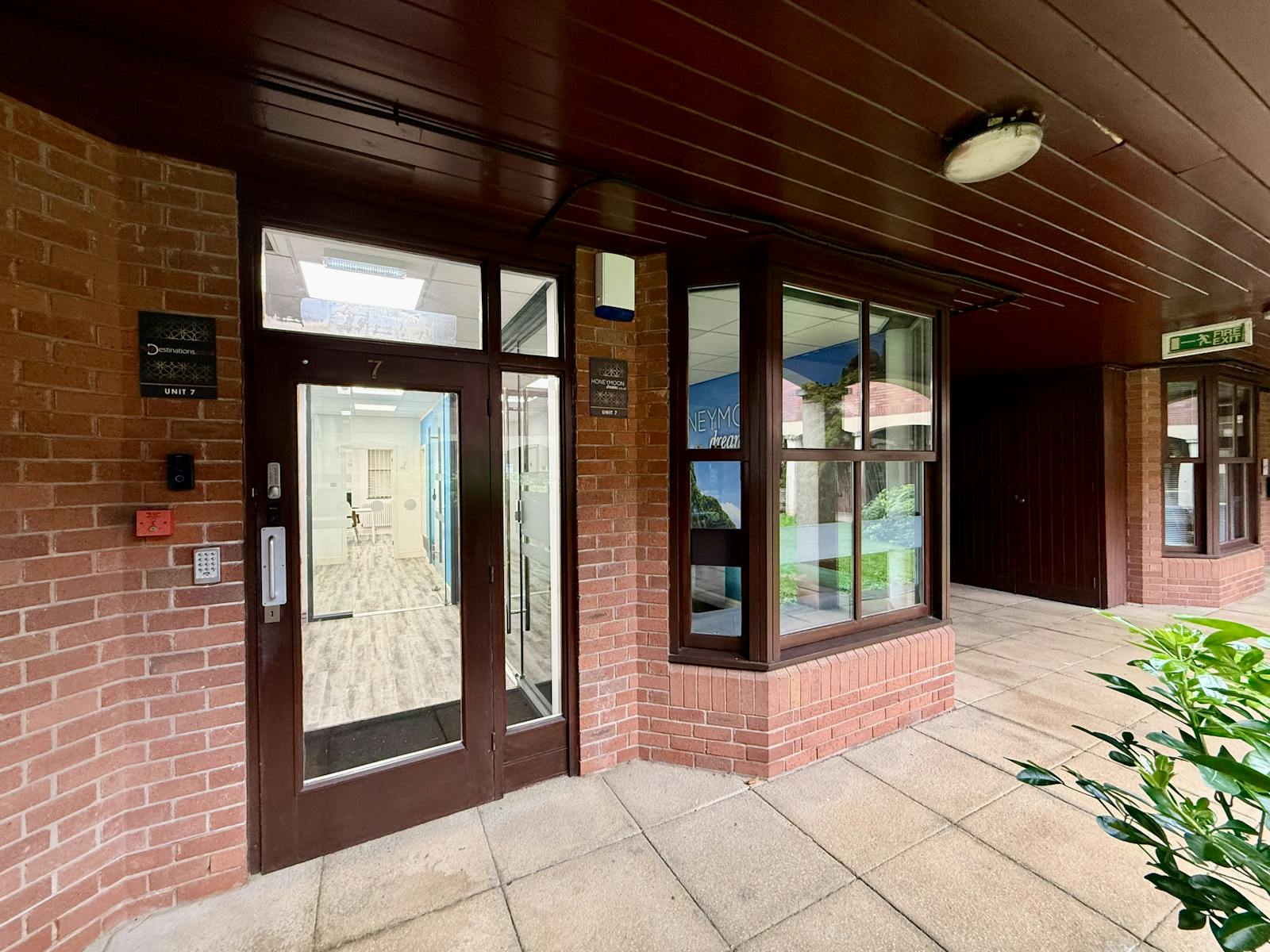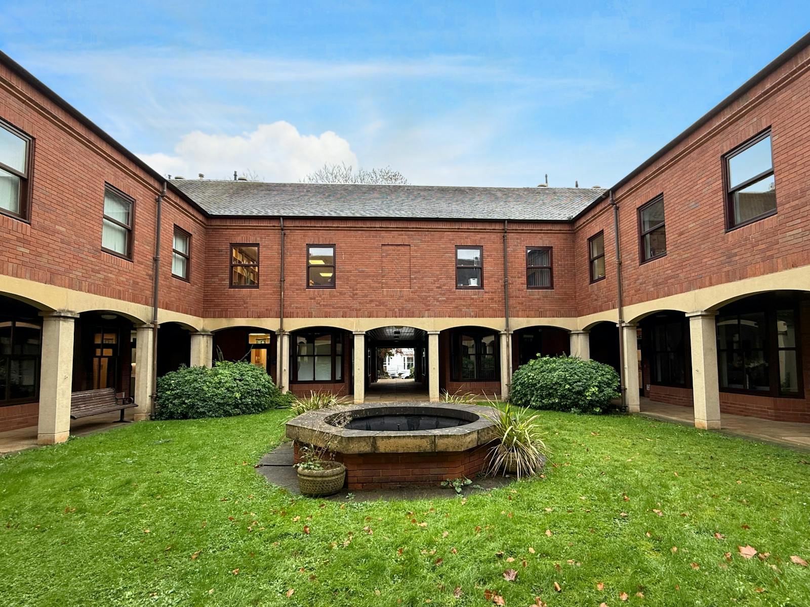 The property comprises a two-storey office building of traditional brick construction overlooking a central courtyard. Arranged over the ground and first floors, it offers a well-presented, practical layout suitable for a variety of office or business uses.