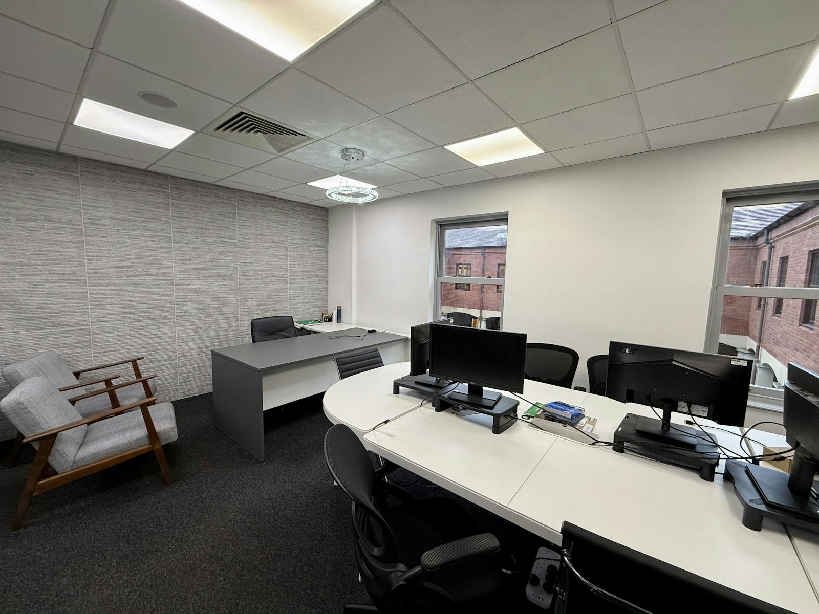 Finished to a good standard, the accommodation includes suspended ceilings with inset LED lighting, double glazed windows, and emulsion-coated walls creating a bright, professional environment. The building further benefits from gas central heating, floor boxes for power and data, and a 100MB dedicated Virgin lease line.