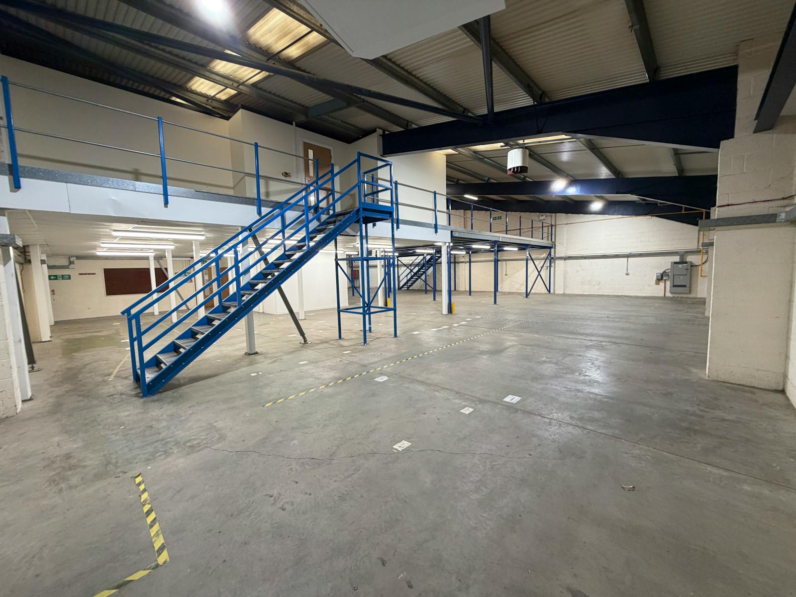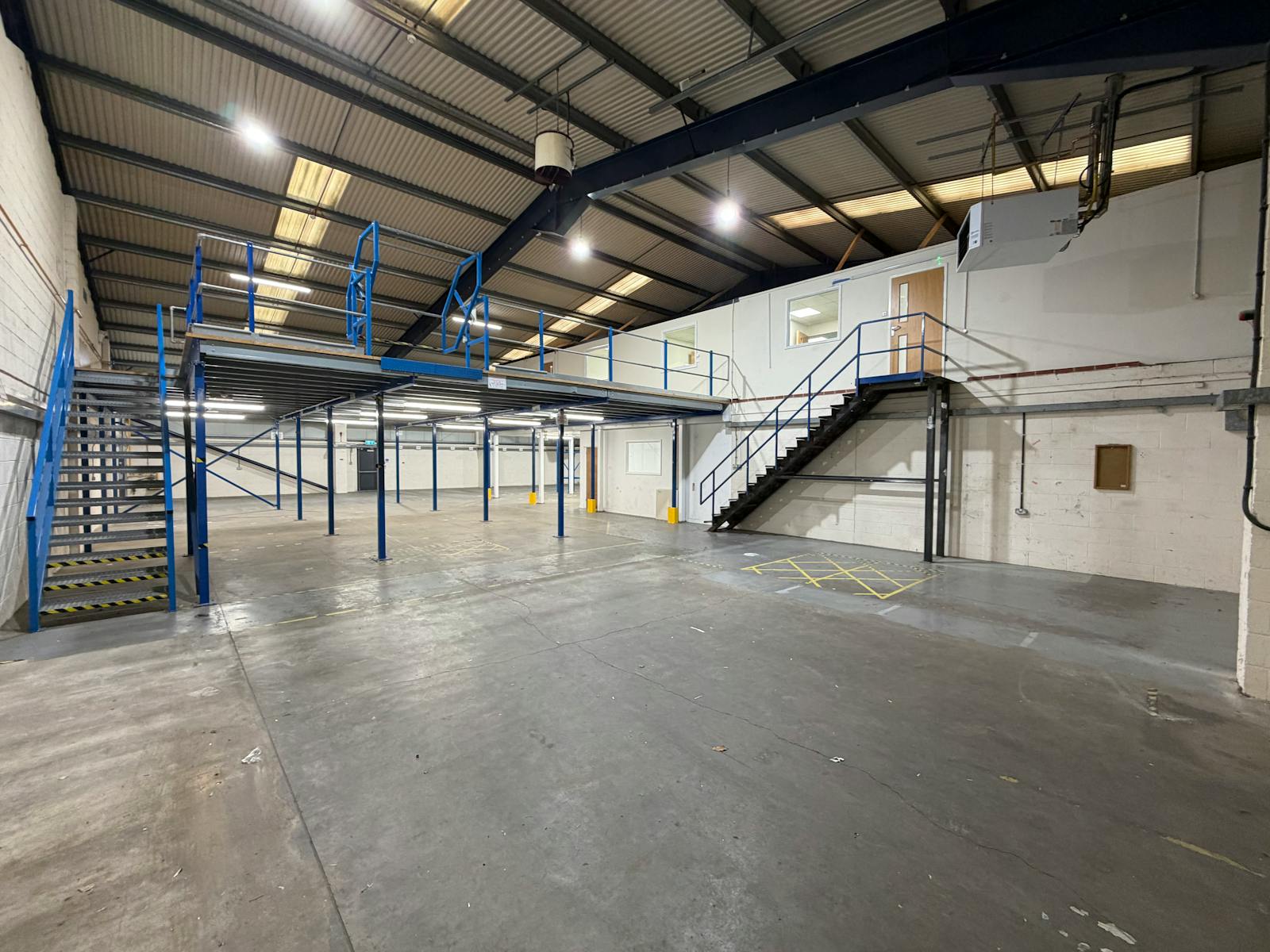 The offices are fitted to a good standard, incorporating a mix of open plan and private offices, and benefit from air conditioning throughout. The warehouse offers a good working height (clear eaves of 5.65 m), mezzanine storage, and excellent loading via an electric roller shutter door (4.6 m wide x 4.9 m high). The warehousing benefits from gas fired space heaters.