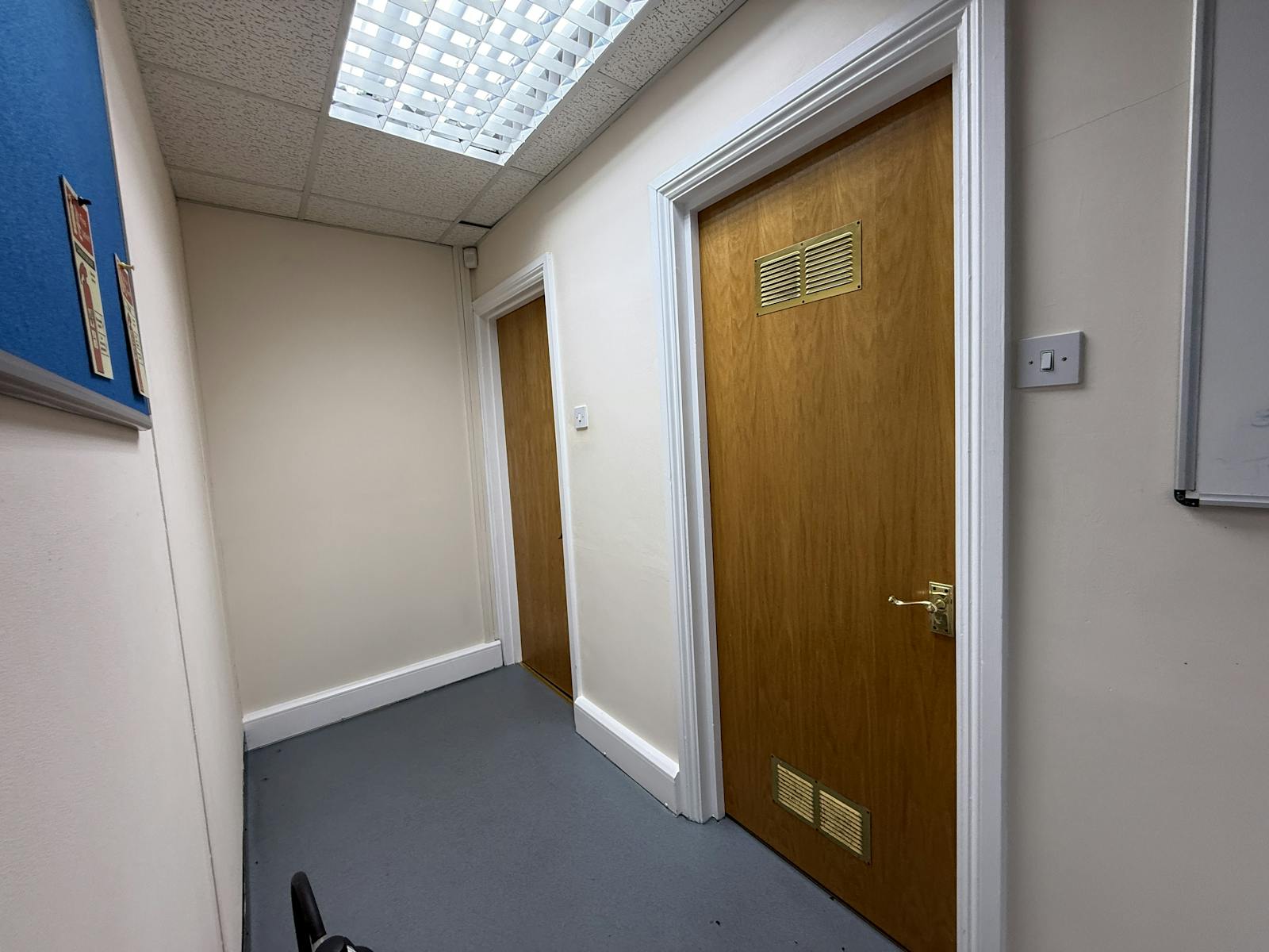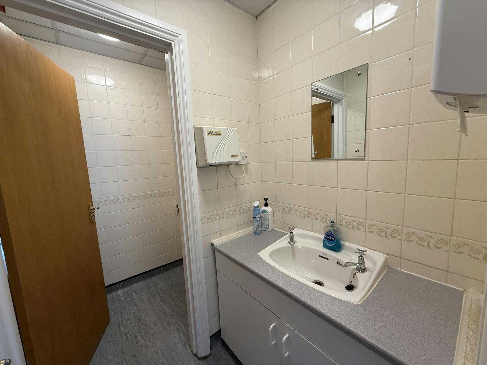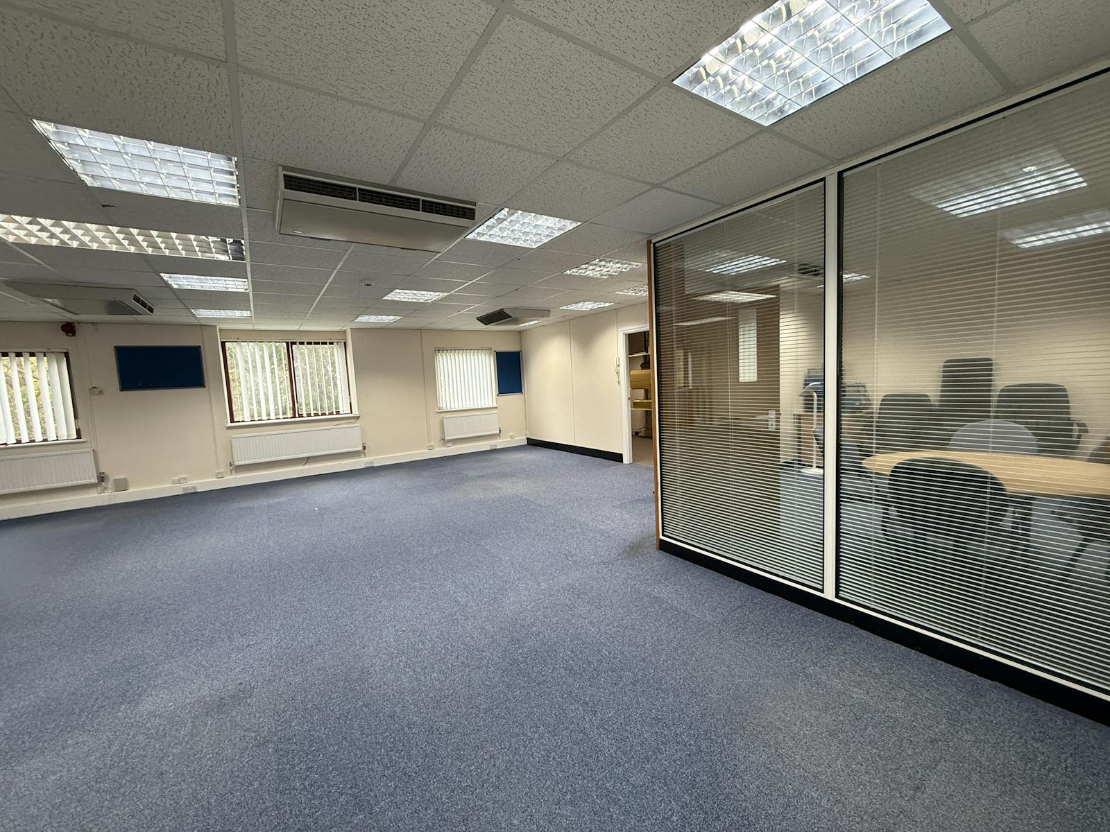 Unit 8 is a two-storey, self-contained office of 2,338 sq ft (NIA) benefiting from gas-fired central heating, part air-conditioning, suspended ceilings with fluorescent lighting, and carpet tiles to main office areas. The accommodation also provides kitchen facilities and separate male and female WCs.