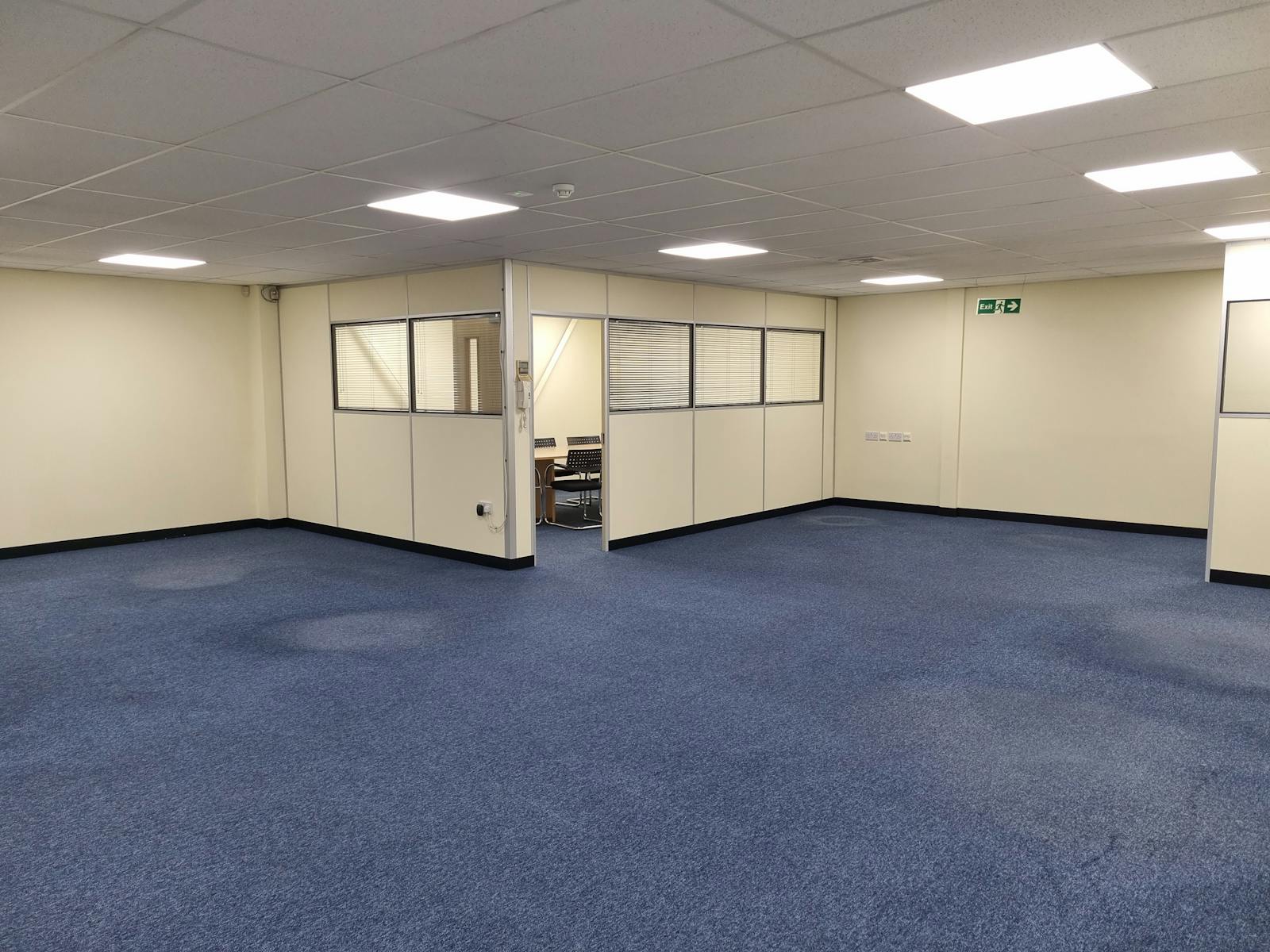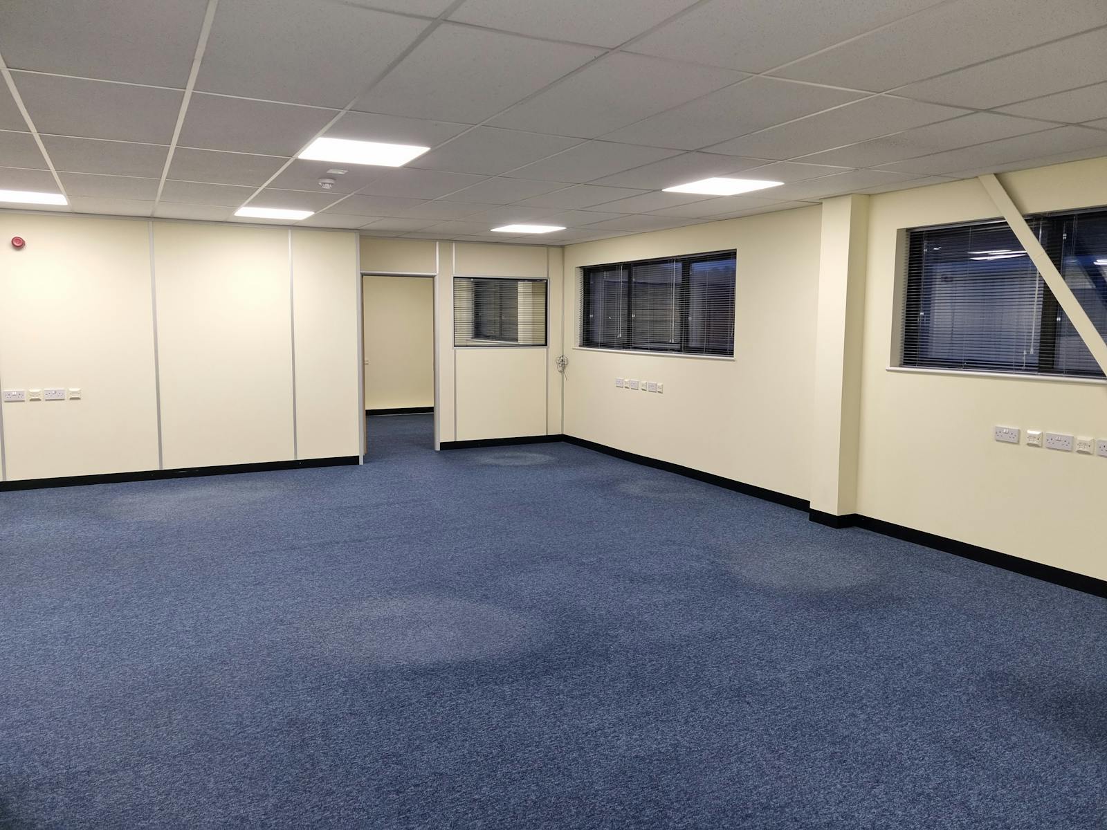 Unit 8 comprises of modern warehouse unit with first floor mezzanine level. The office space on the first floor benefits from air conditioning and heat pump capability. The floor is arranged as open plan with a small office suite and a meeting room. There is also a storage room on the first floor which could be an office suite. The ground floor offers two W/C’s one of which is disabled, a storage room and the general warehouse space which is accessed via the roller shutter. Externally there is loading area in front of the roller shutter, parking for two cars, a further two allocated spaces on the estate and then visitor parking unallocated.