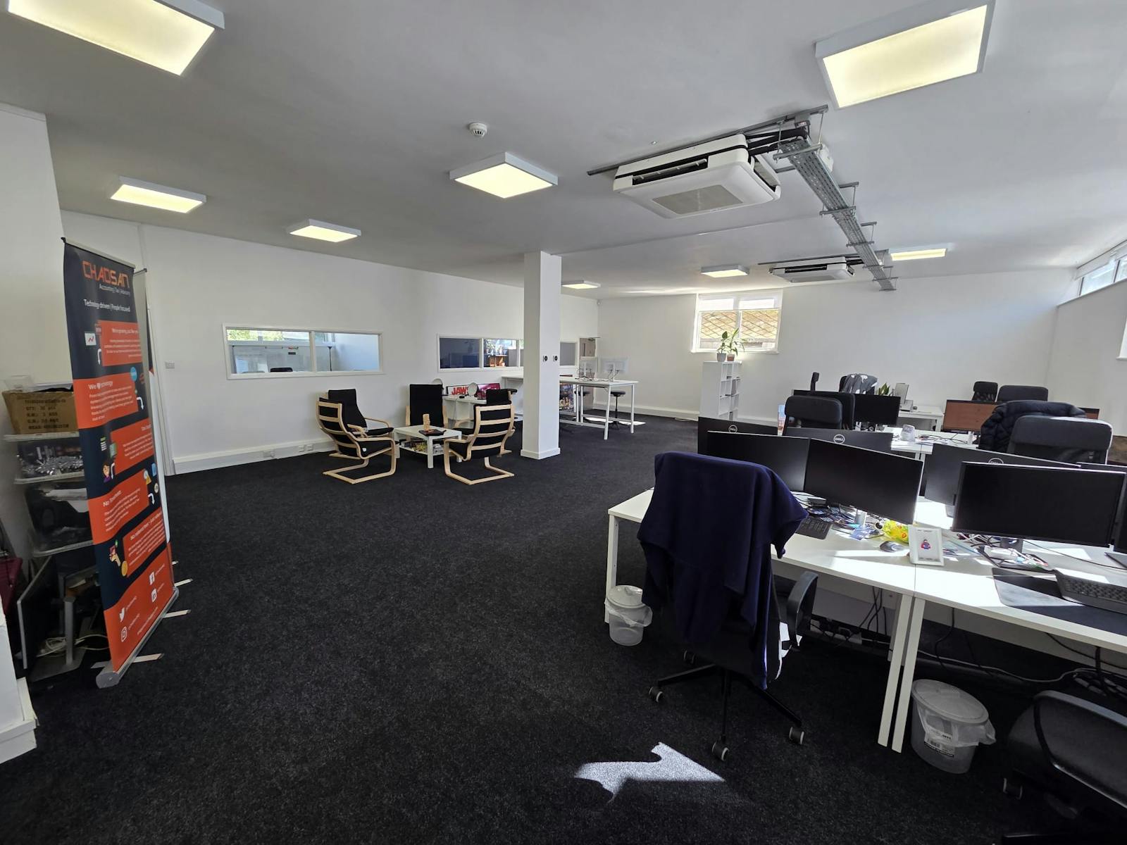 The main office area boasts a spacious, modern open-plan design, accompanied by two internal private offices/ meeting rooms/ board rooms. Additional amenities include a personal kitchen, shared male and female toilet facilities, LED lighting, air conditioning and on site parking for up to 6 cars.