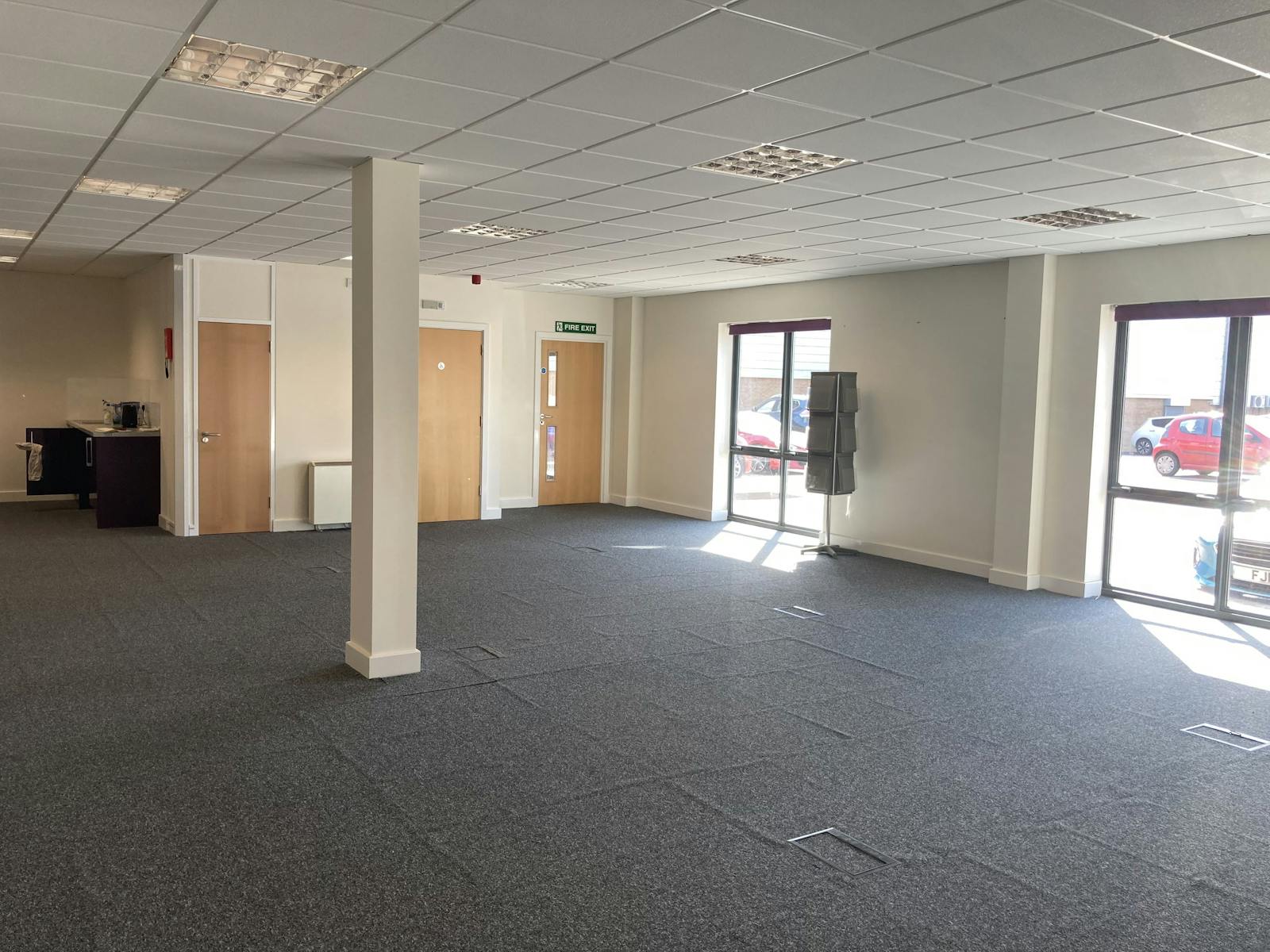 The two floors are large open plan spaces, each with kitchen area and WC's. The suites are fully carpeted, have raised floors and suspended ceilings with recessed lighting throughout.