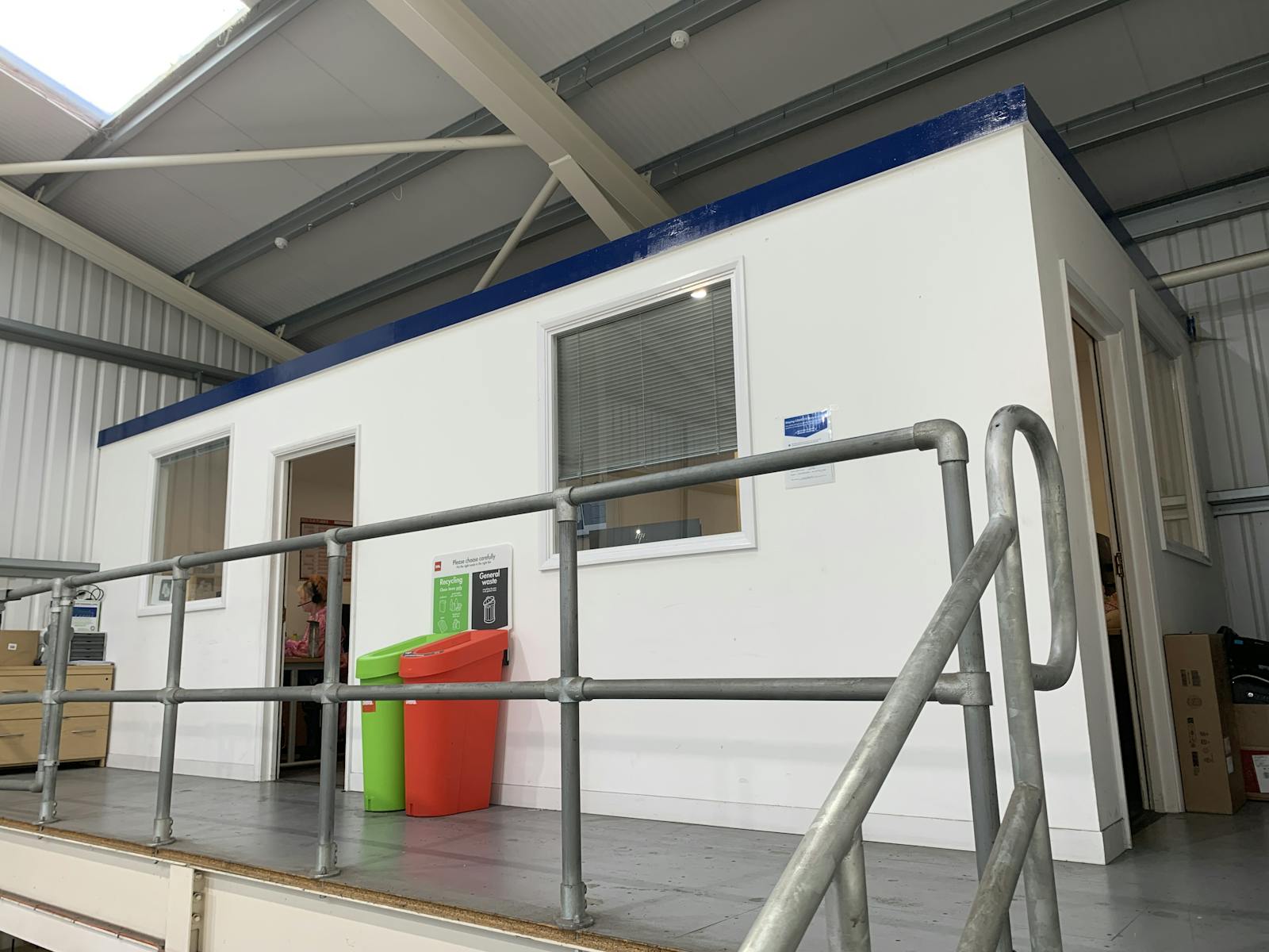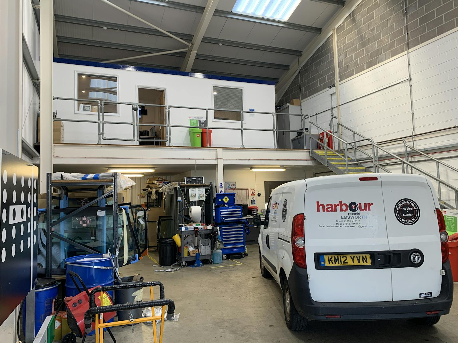The property consists of a modern open plan warehouse with a mezzanine floor towards the rear and a toilet block below.