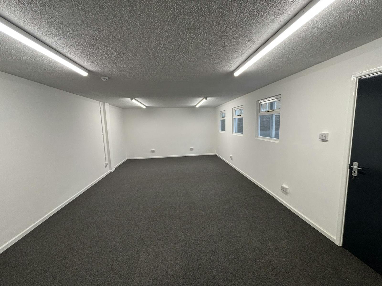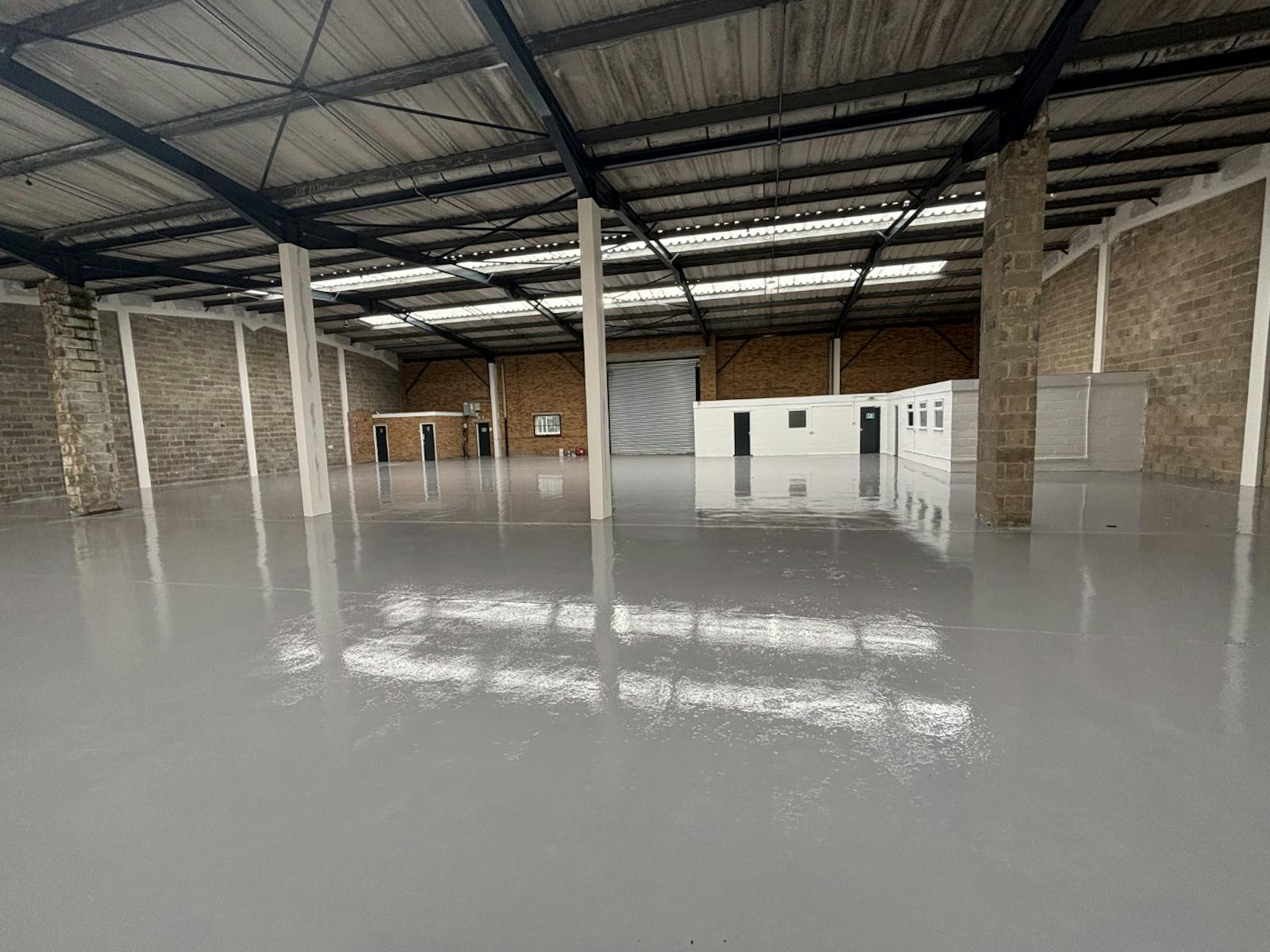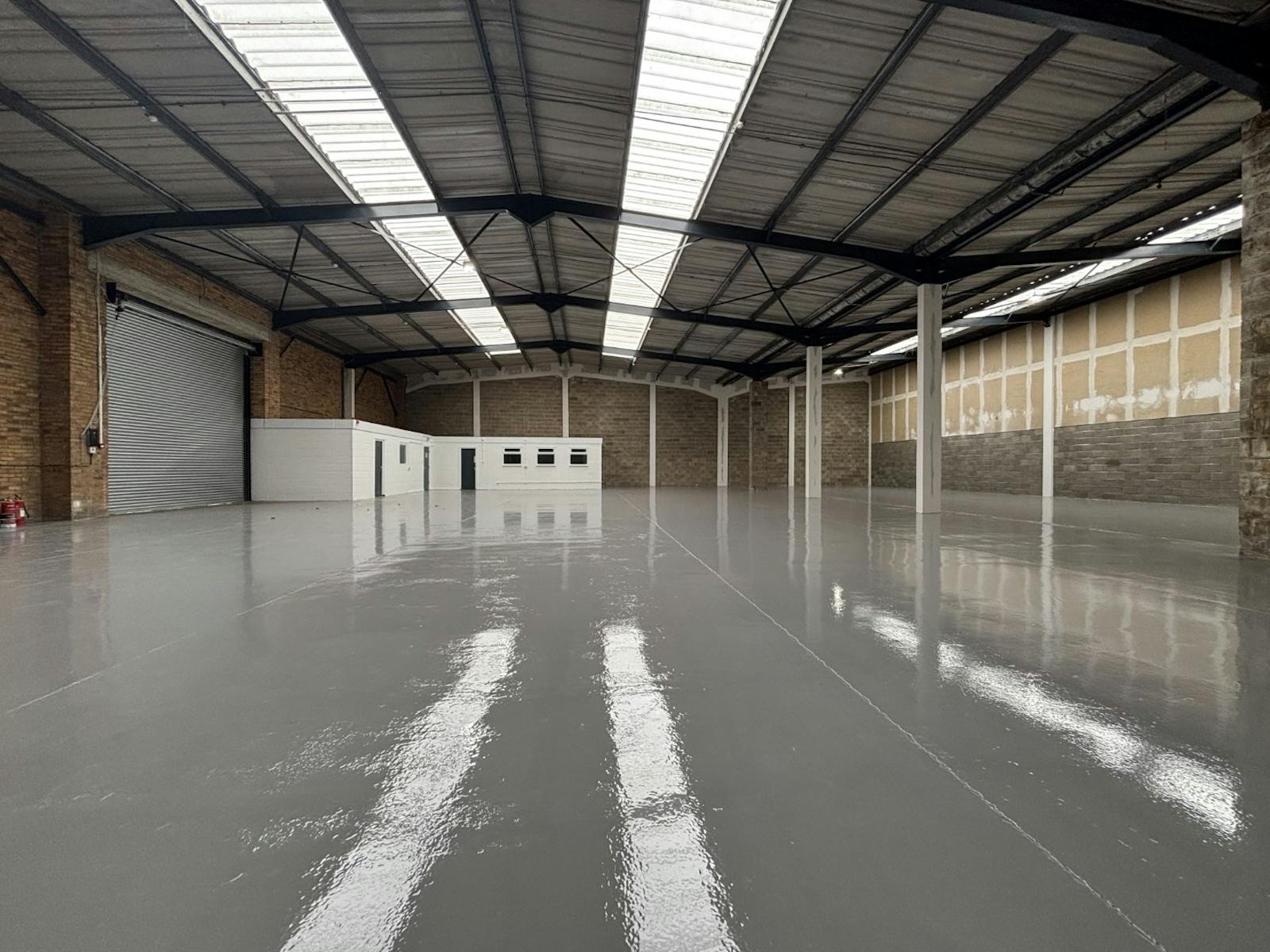 Unit A2 comprises a refurbished mid terrace unit providing clear span warehouse with welfare facilities. The unit has an internal eaves height of 5.4m, single full height electric roller shutter door and LED lighting. External and internal redecorations have taken place and a Liquasil coating has been applied to the roof.