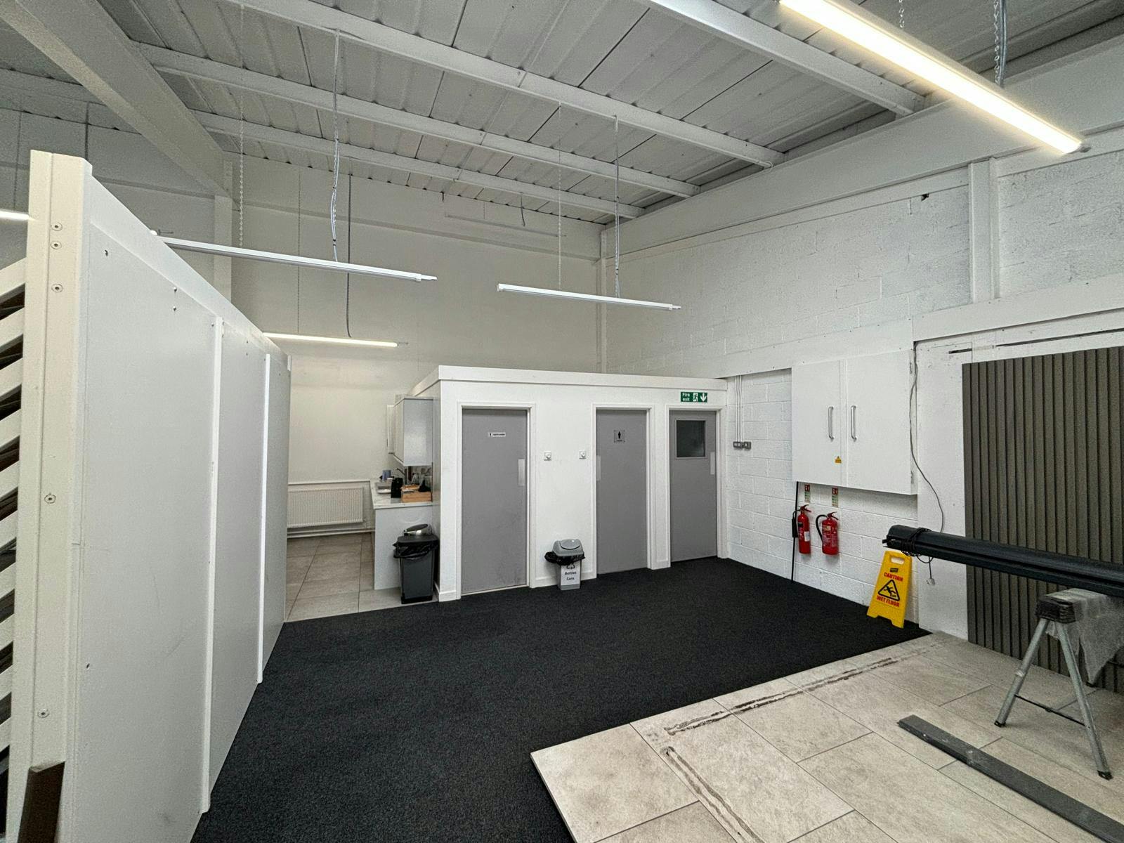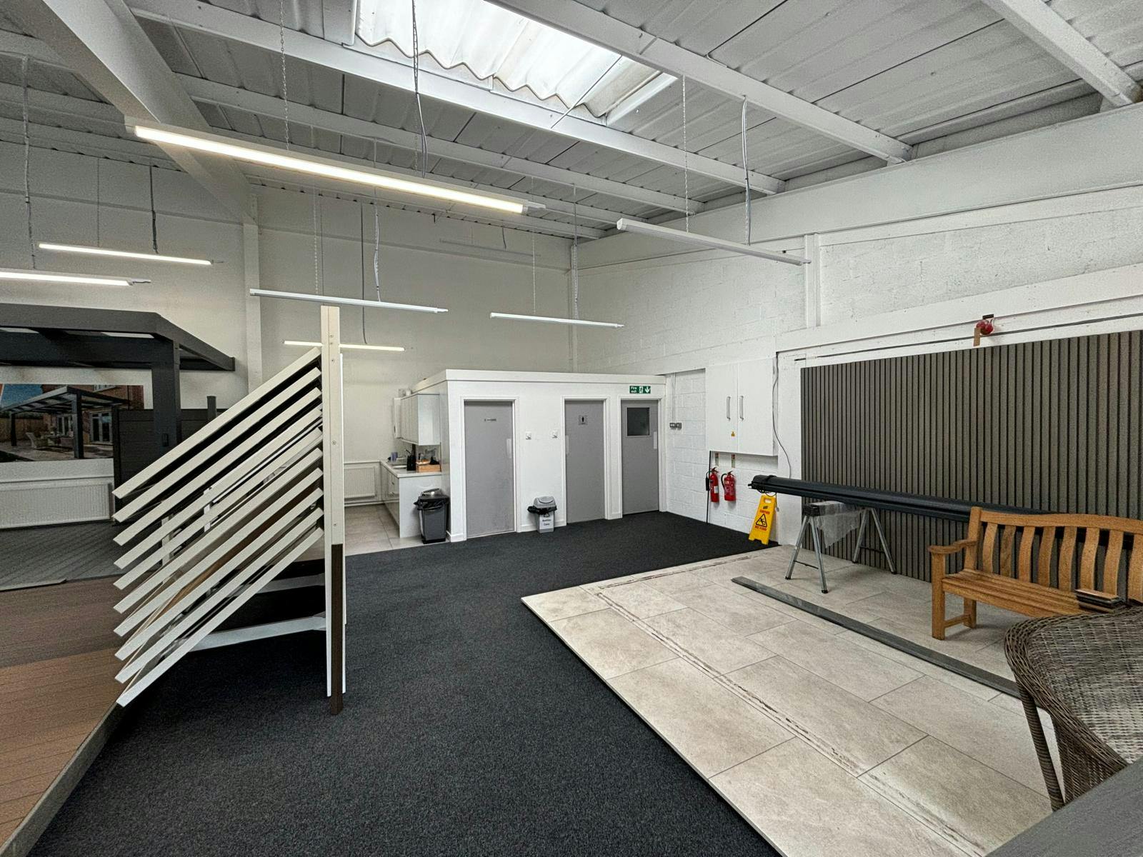 Access to the units is via a series of pedestrian and roller shutter doors, and there is a large mezzanine floor to the rear warehouse.