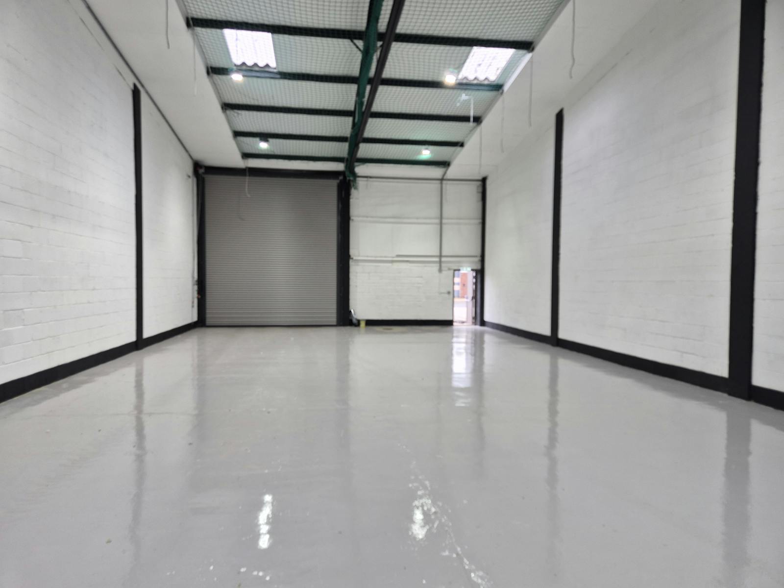 The unit is a mid terraced unit of steel frame with part brick/blockwork and part profile cladding. The unit has been refurbished and benefits from LED lighting, electric loading door, ground floor office, teapoint and WC. Externally there is a large forecourt for parking and loading.