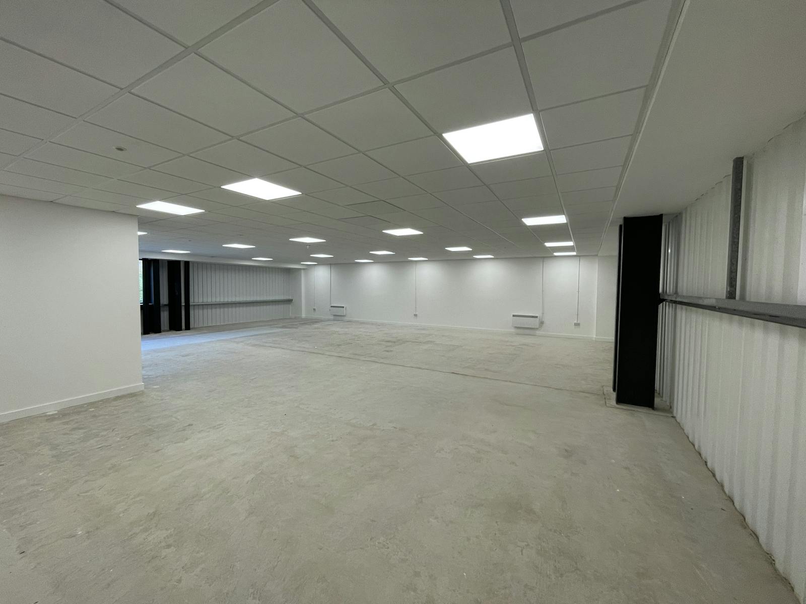 The first-floor office accommodation benefits from a suspended ceiling and LED lighting with electric heating.