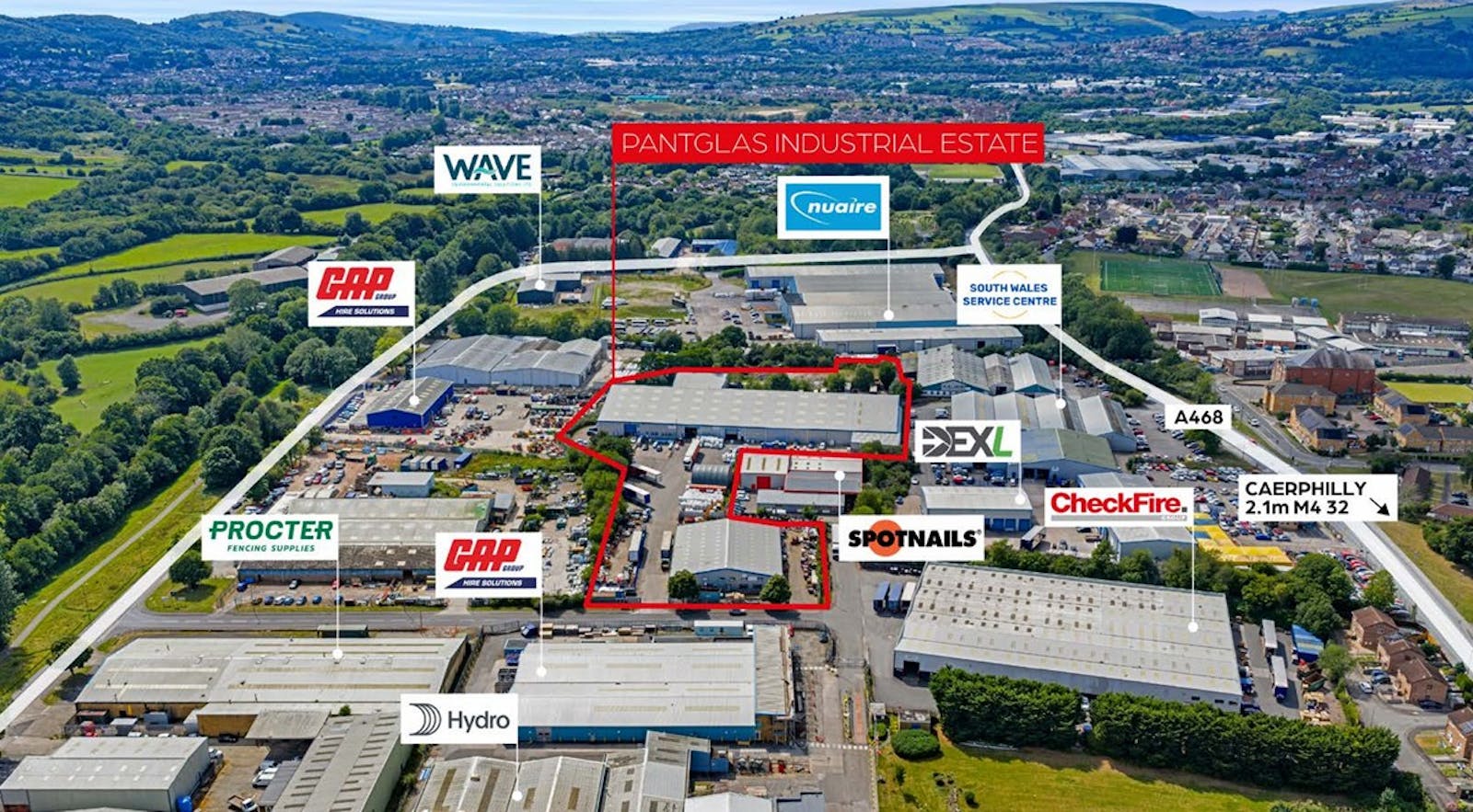 The Pantglas Industrial Estate is situated in Bedwas, roughly 2 miles east of Caerphilly town centre.