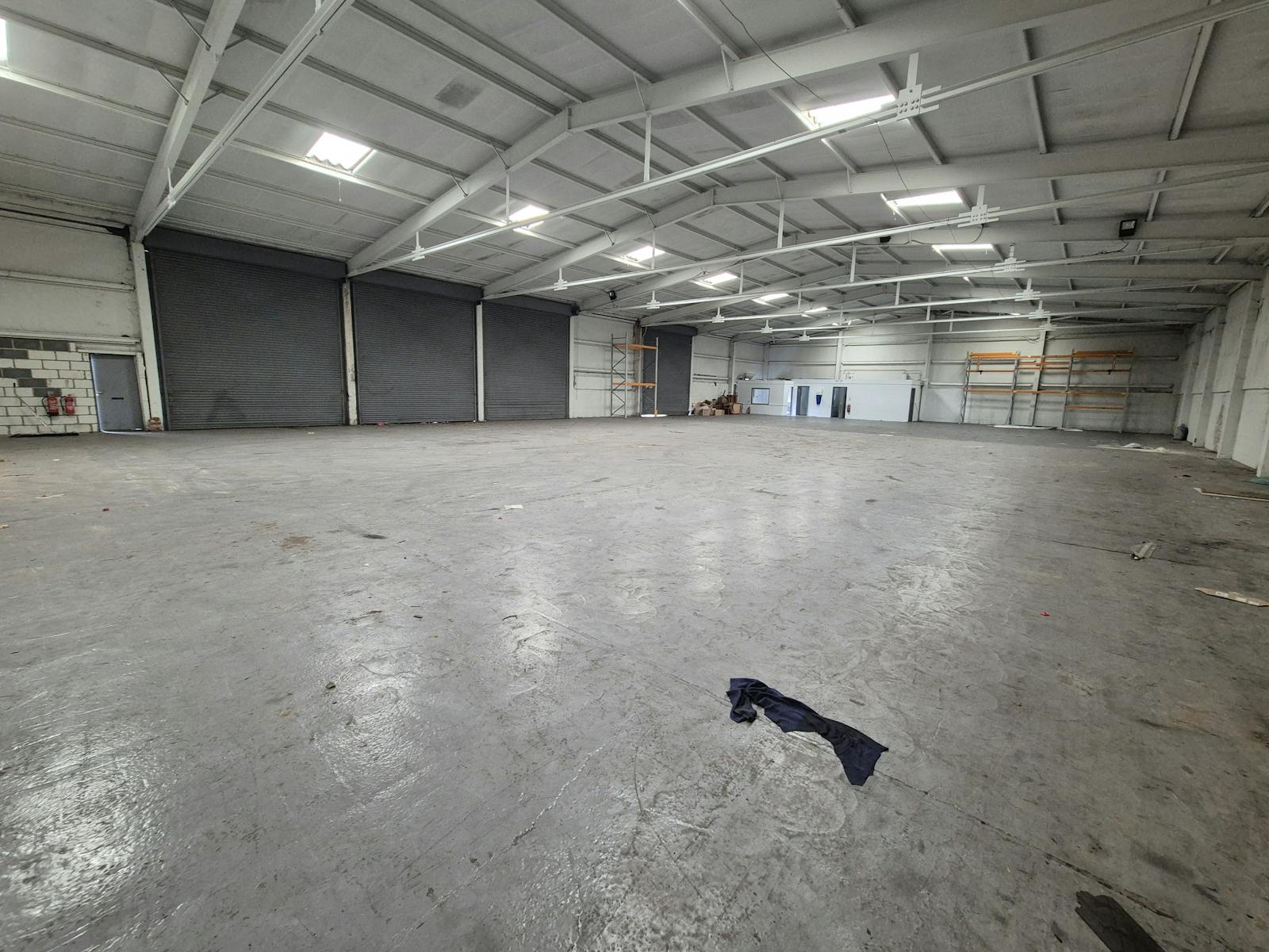 A mid/end terraced unit of steel truss roof and concrete frame with part brick/blockwork and part profile cladding elevations. The unit benefits from 5m eaves, 4 roller shutter doors, lighting, ground floor office, teapoint and separate WC's. Externally there is a large forecourt for parking and loading.