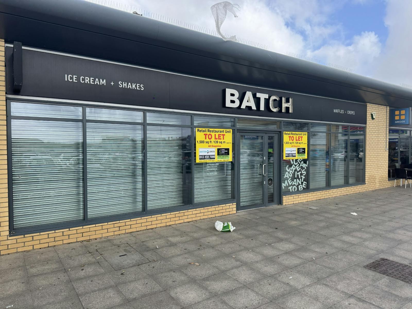 The unit is situated mid terrace in a central parade, overlooking the car park with an area to the front for outside seating. Adjacent occupiers include Greggs & Pepe’s Piri Piri.