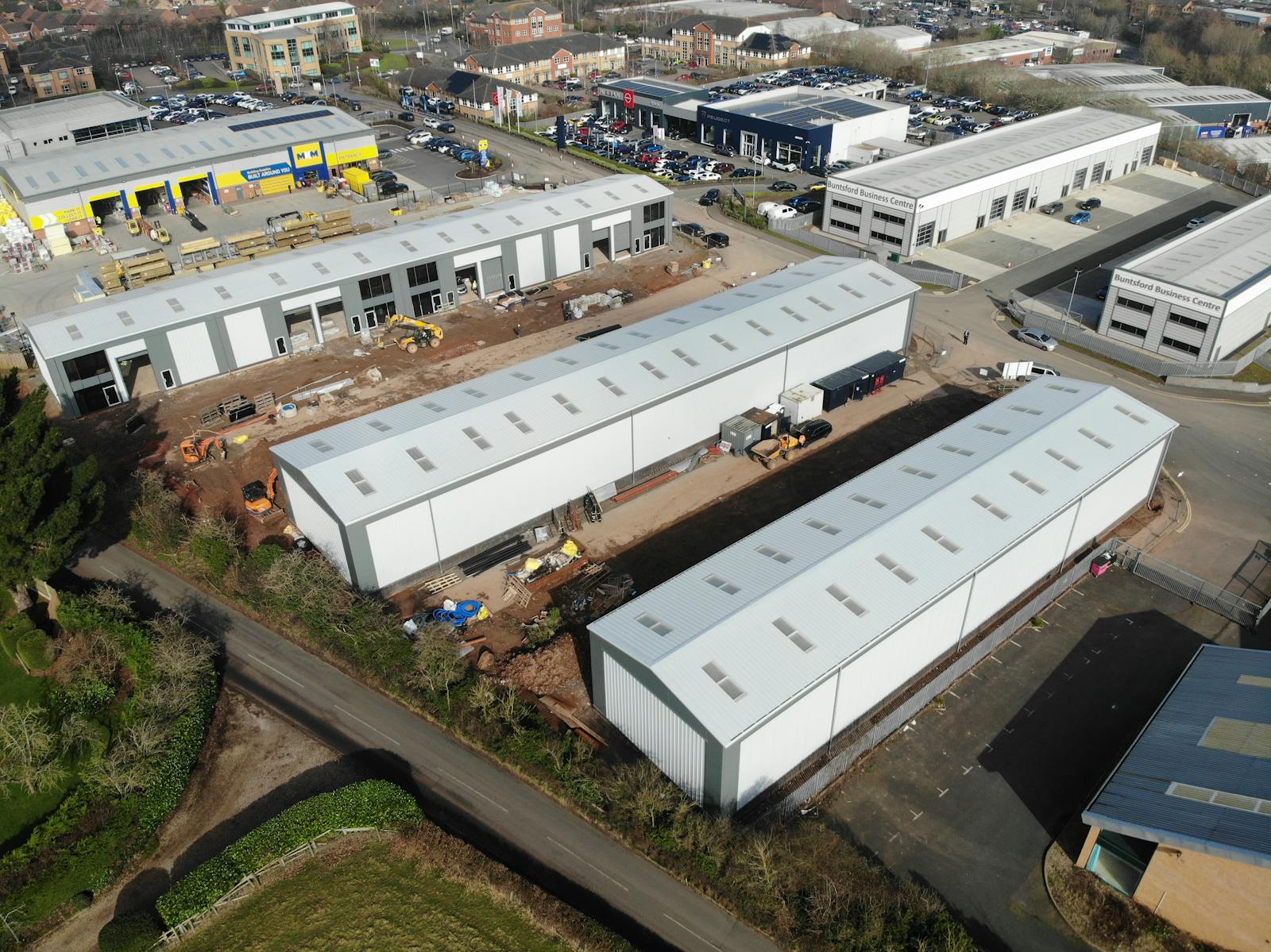 The units will be of steel portal frame construction with ridged and pitched insulated profile steel roofs incorporating double-glazed uPVC rooflights, with eaves heights of 20 ft (6.1 m). The walls will be full height insulated profile steel cladding incorporating a double-glazed, framed frontage, which will be finished in merlin grey powder coating.