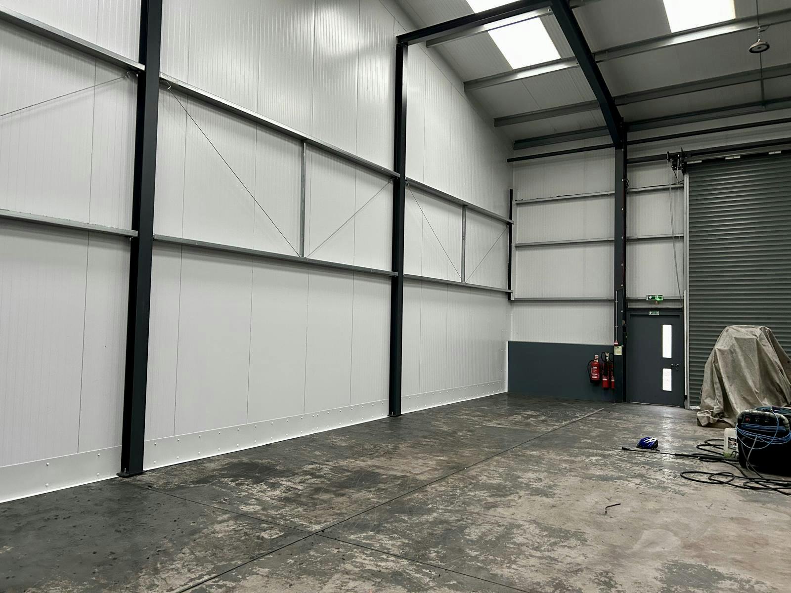 The unit has an eaves height of approximately 6.6 metres and has two up and over doors with widths of 3.8 metres. The unit is of portal framework clad in profile sheeting. The unit benefits from 7 designated car parking spaces.