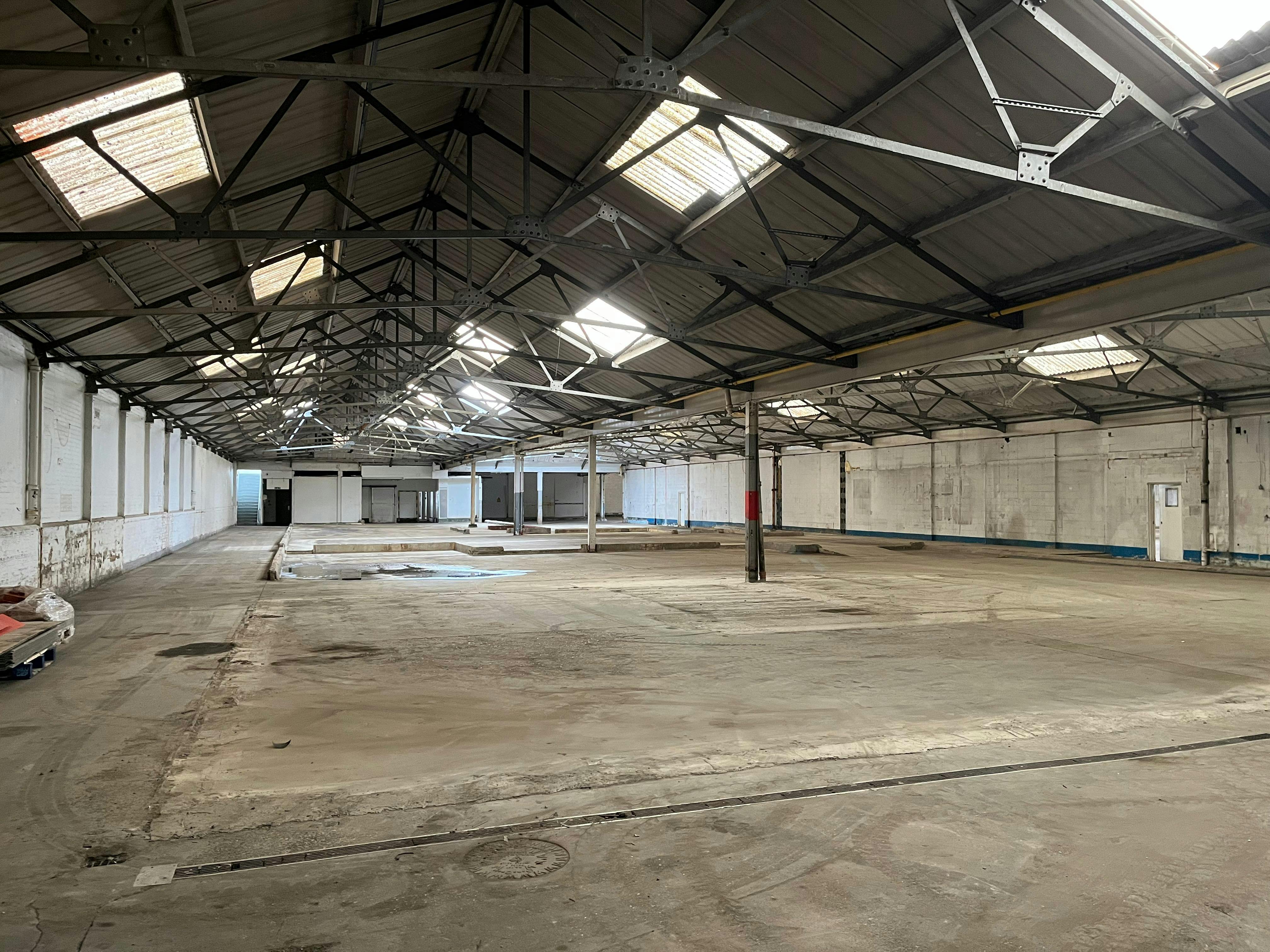 A large end of terrace industrial building currently in use as a food production factory. The warehouse has concrete flooring and is currently divided for factory operation but would be in a more open plan orientation once vacant. There is a large, concrete paved yard at the rear of the property opening onto Minerva Road with 3 loading doors. The eaves height is 23ft.