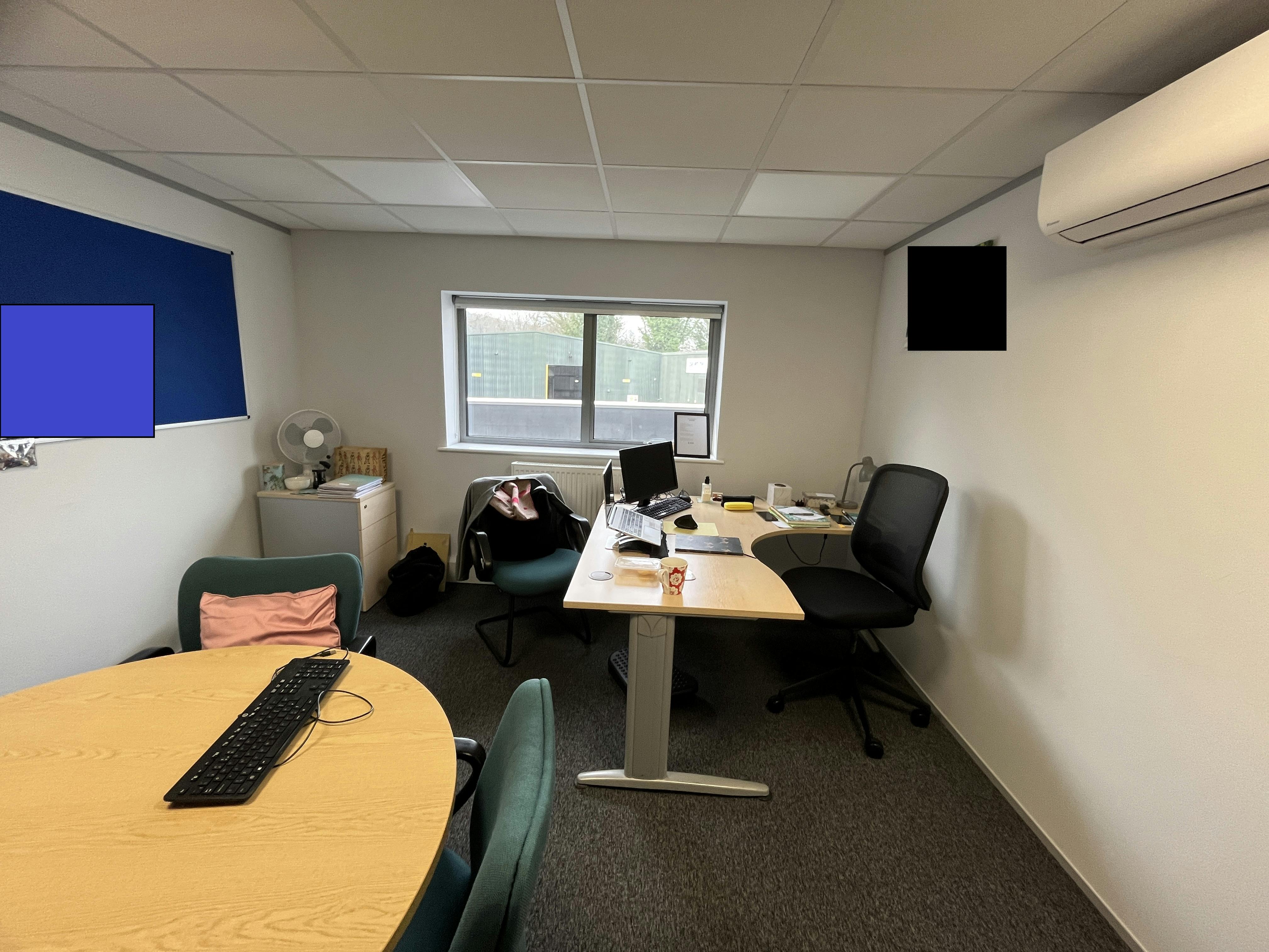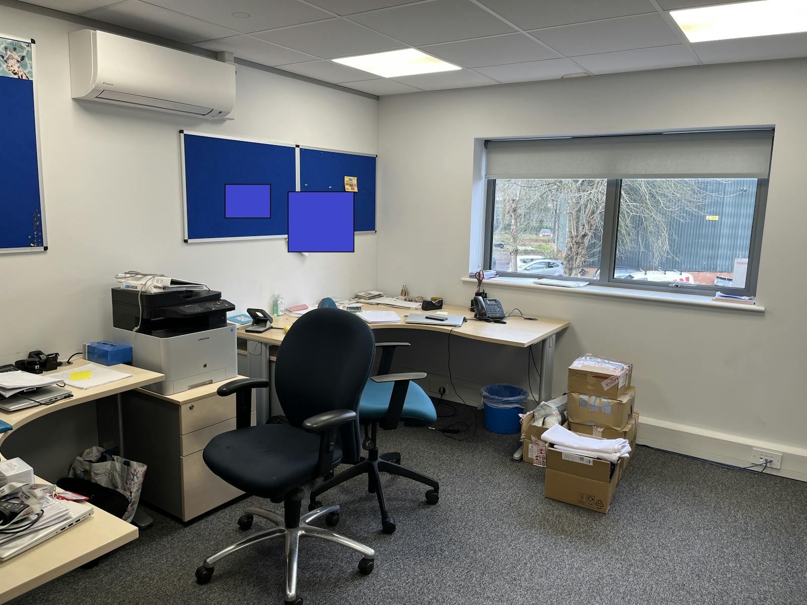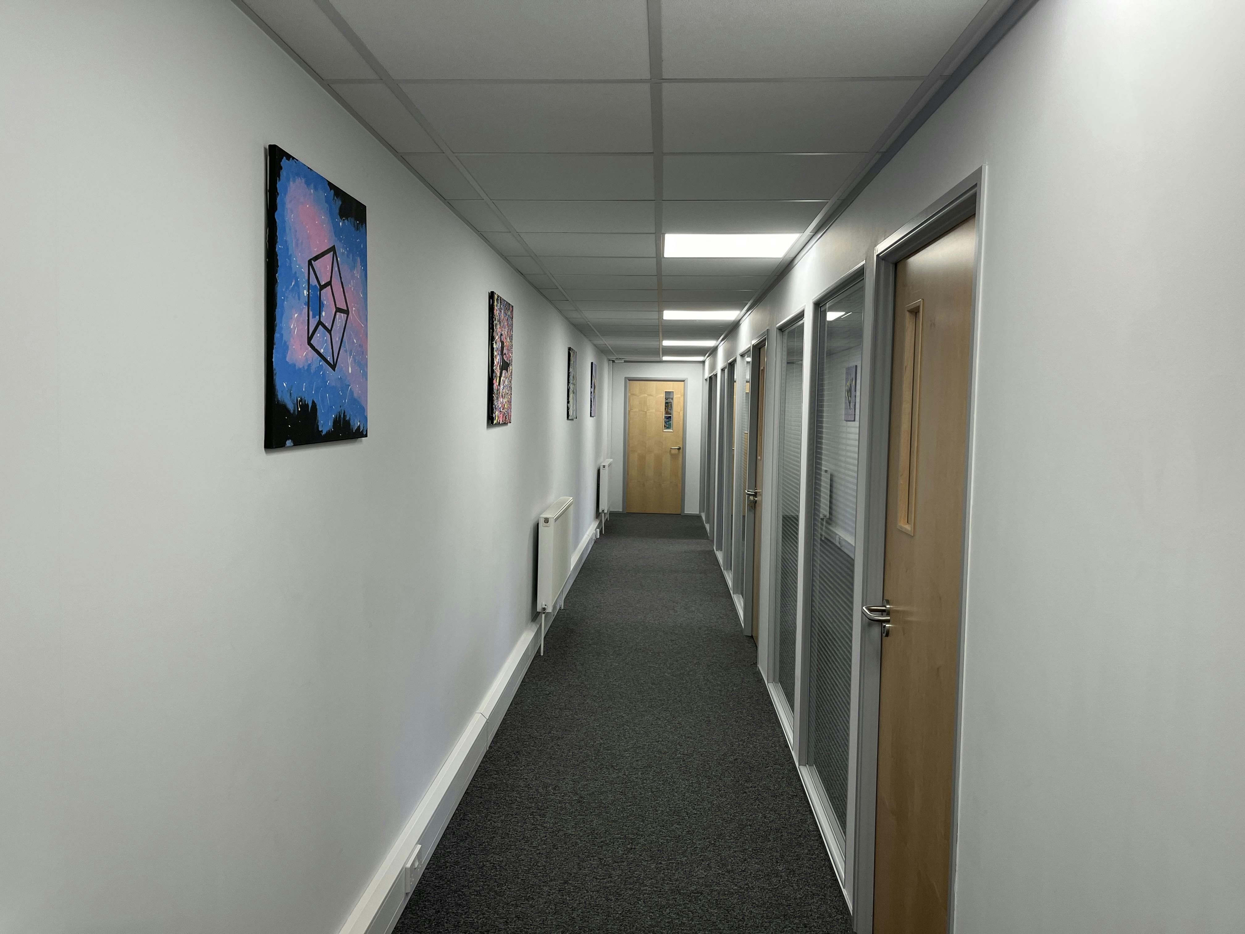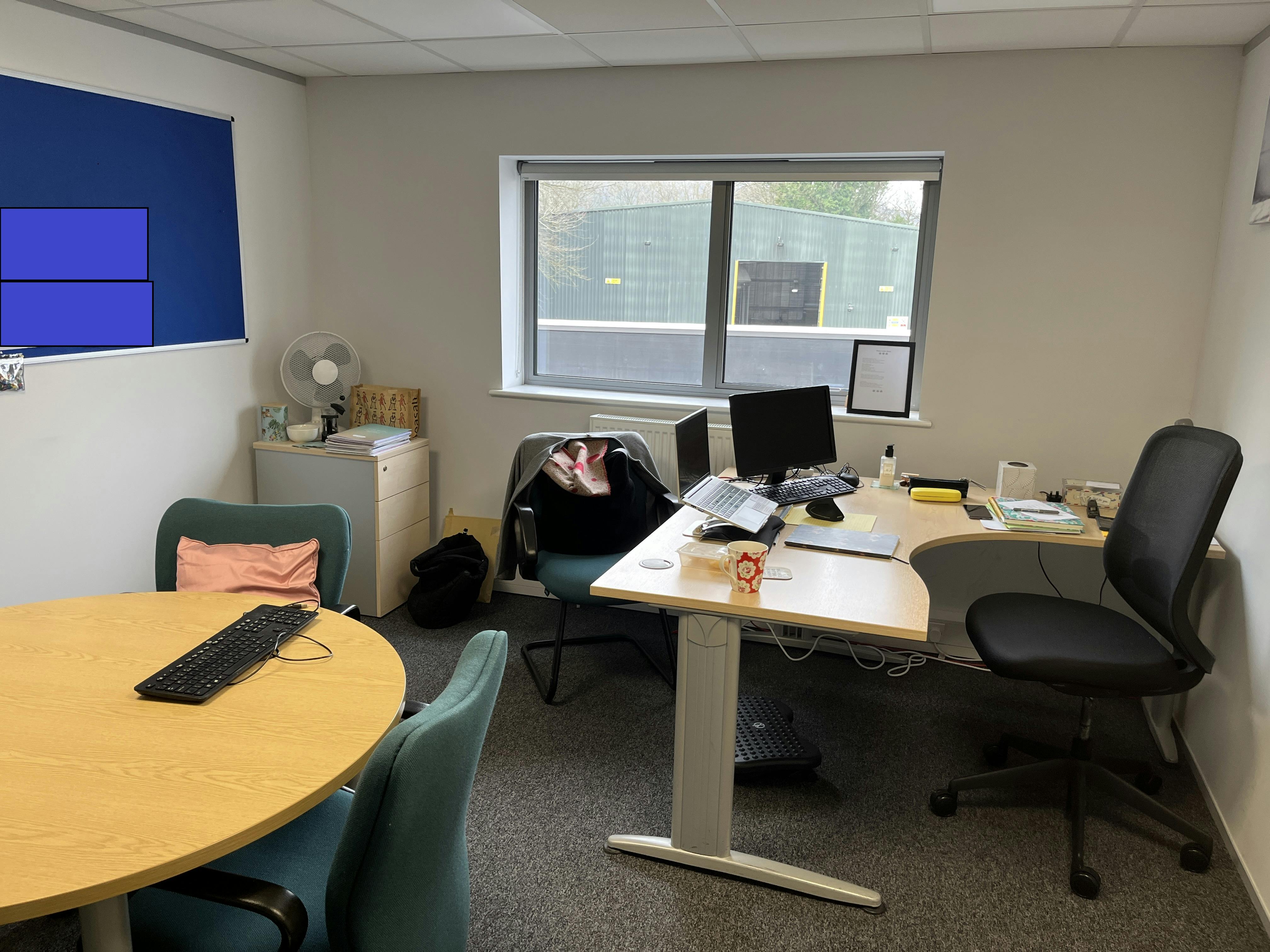 The space to be let provides two structurally open plan suites, either side of the shared reception area, on the ground floor. One of the areas is currently used for storage/fulfilment, the other a meeting suite with 5 separate offices and a post room, divided by demountable partitioning.