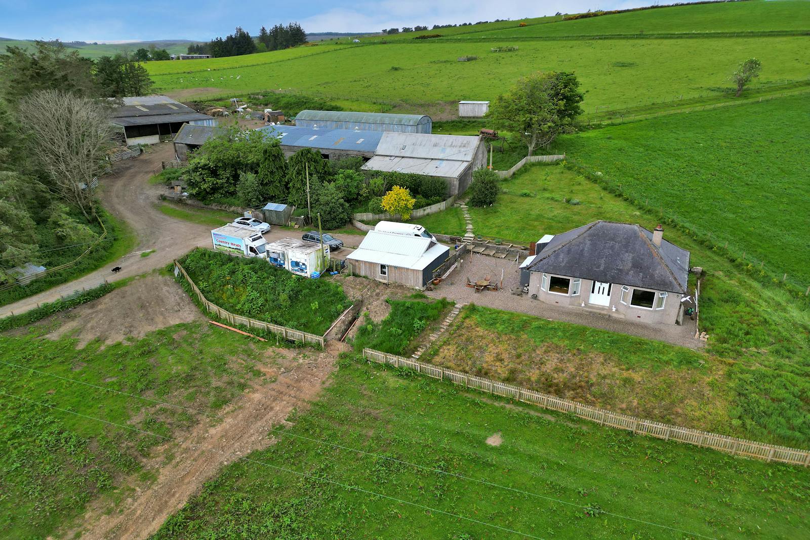 Upper Lynemore comprises of a compact farming unit, which extends to approximately 10.42 hectares (25.75 acres) in total and includes a range of farm buildings and an area of farmland. The property lies in a highly scenic rural location approximately 4 miles south of Keith and approximately 9Ω miles northwest of Huntly within Morayshire. The property is also approximately 6 miles northeast of Dufftown. The property is accessed from a steep farm track which sweeps passed the outbuildings to the entrance of the farmhouse. The house, over one level, has been a much loved family home and is presented in move-in order throughout. The property is thoughtfully laid out and tastefully decorated. There are beautiful gardens to three sides with outstanding panoramic view. The farm is used for stock farming purposes and the land is generally ploughable and in reasonable order. The soils are described on the Hutton Institute Soil Plans as being mainly humus iron podzols, some brown forest soils and gleys of the Strichen Soil Association. The land undulates towards the south with a mainly easterly aspect and lies at approximately 240 metres above sea level. Field boundaries consist mainly of post and wire fencing which appears to be in reasonable order and generally stock proof. The land is shown on the Hutton Institute Land Capability for Agriculture Plans as ranging between Classes 3:2 and 4:1 in quality. As such the land is deemed to be suitable for the production of grass for grazing purposes with some limited potential for cropping. The outbuildings are of mixed repair and provide useful shelter and storage. There is a large hardstanding area located adjacent to the steading which is used for the storage of bales. Mains electricity and private water are connected to some but not all of the buildings.