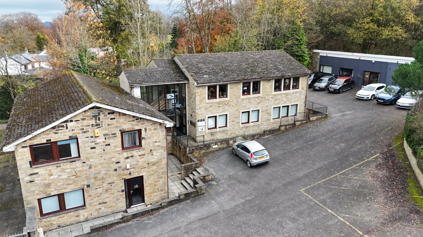 five office suites across three buildings. The main buildings are of