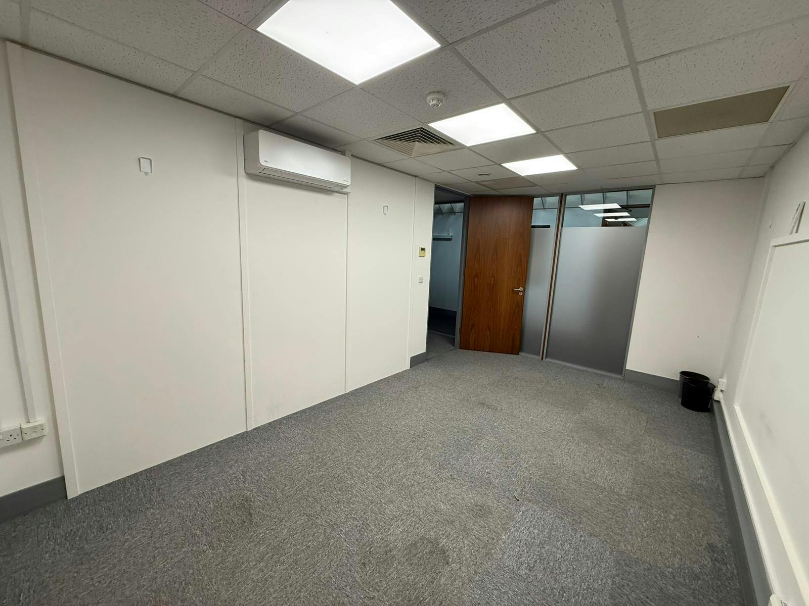 The office comprises of a shared kitchen, three communal meeting rooms, communal toilets, and designated parking . The office suites are equipped with air conditioning, a suspended ceiling, LED lighting, and carpet throughout all office spaces. Suite 7 has external windows, and suite 12 benefits from 2 allocated parking spaces.