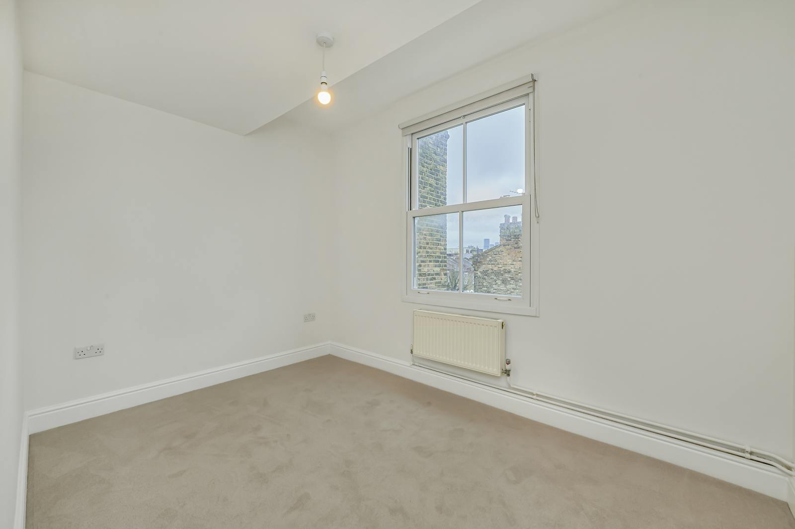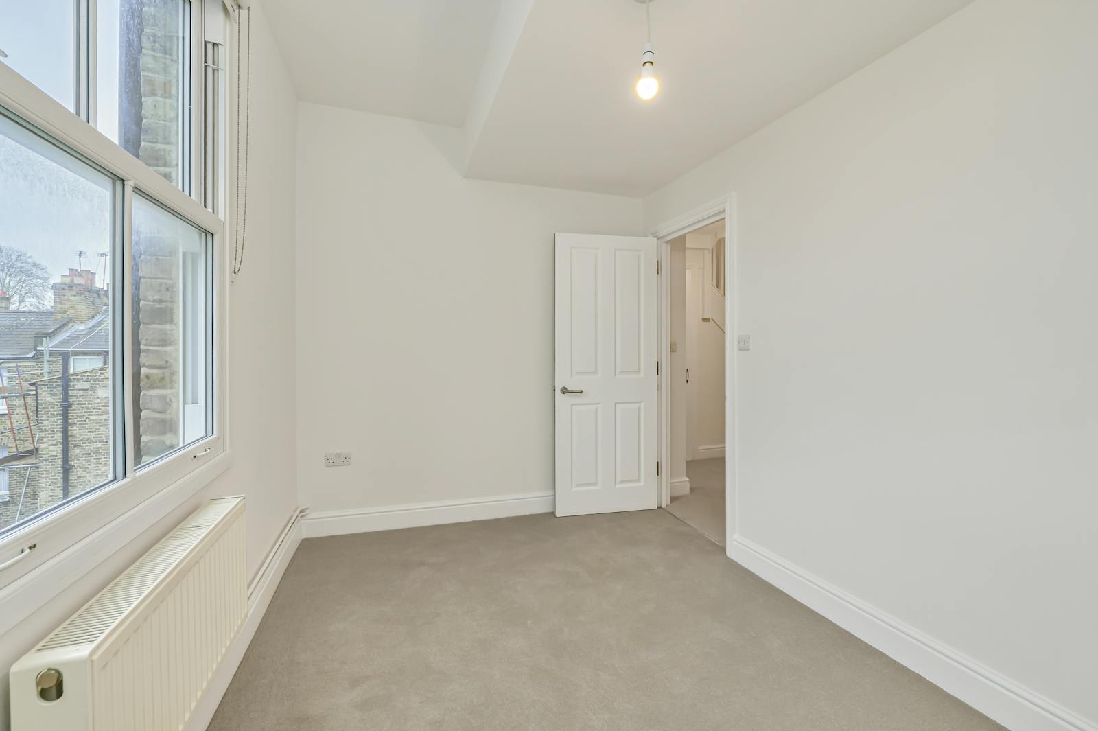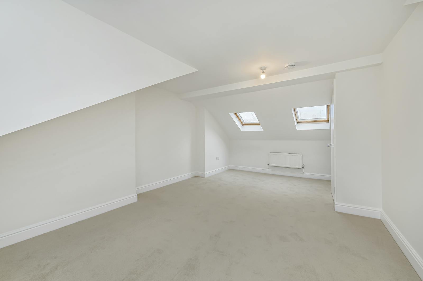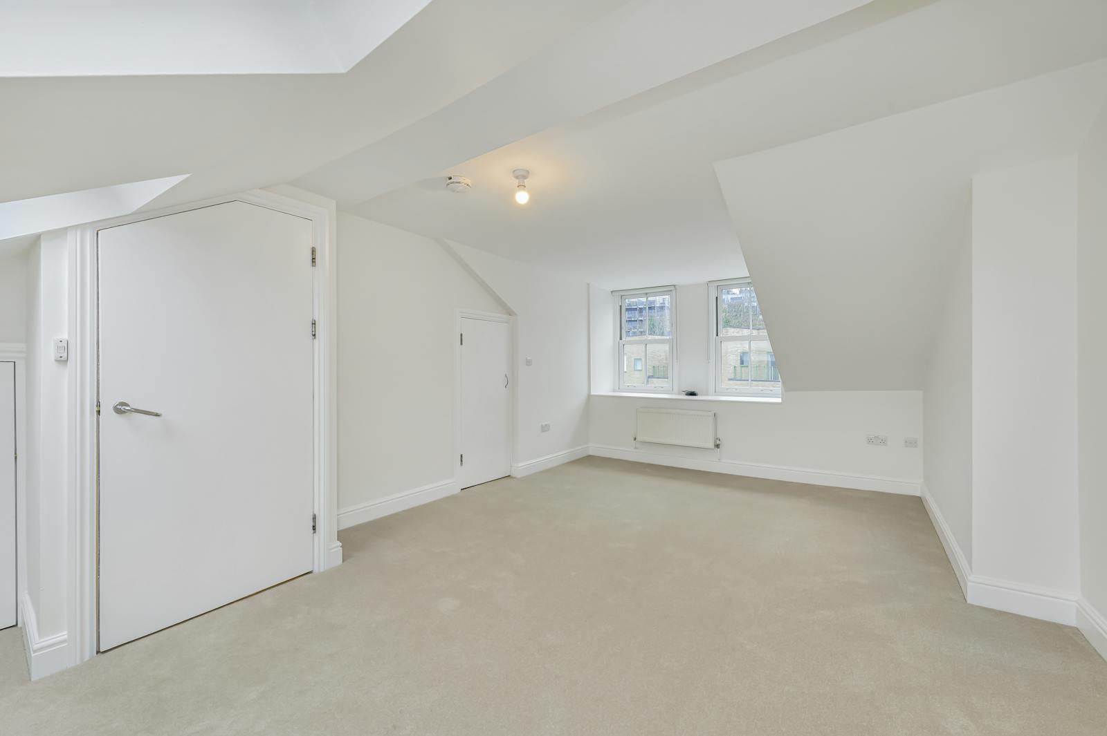 The second bedroom is located on the top floor and has a generous amount of storage and benefits from ample light from four windows.