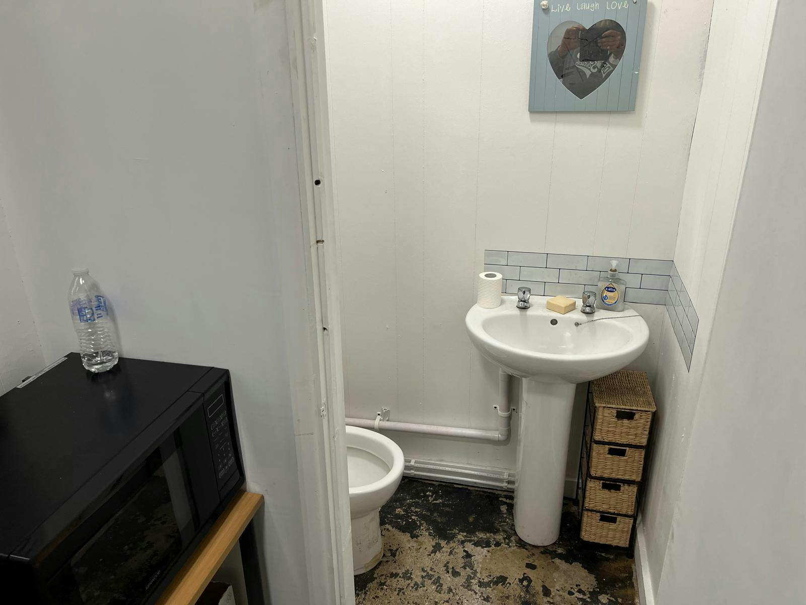 The secure site is accessed via a large entranceway. The office also benefits from front parking, as well as a kitchenette and W.C.
